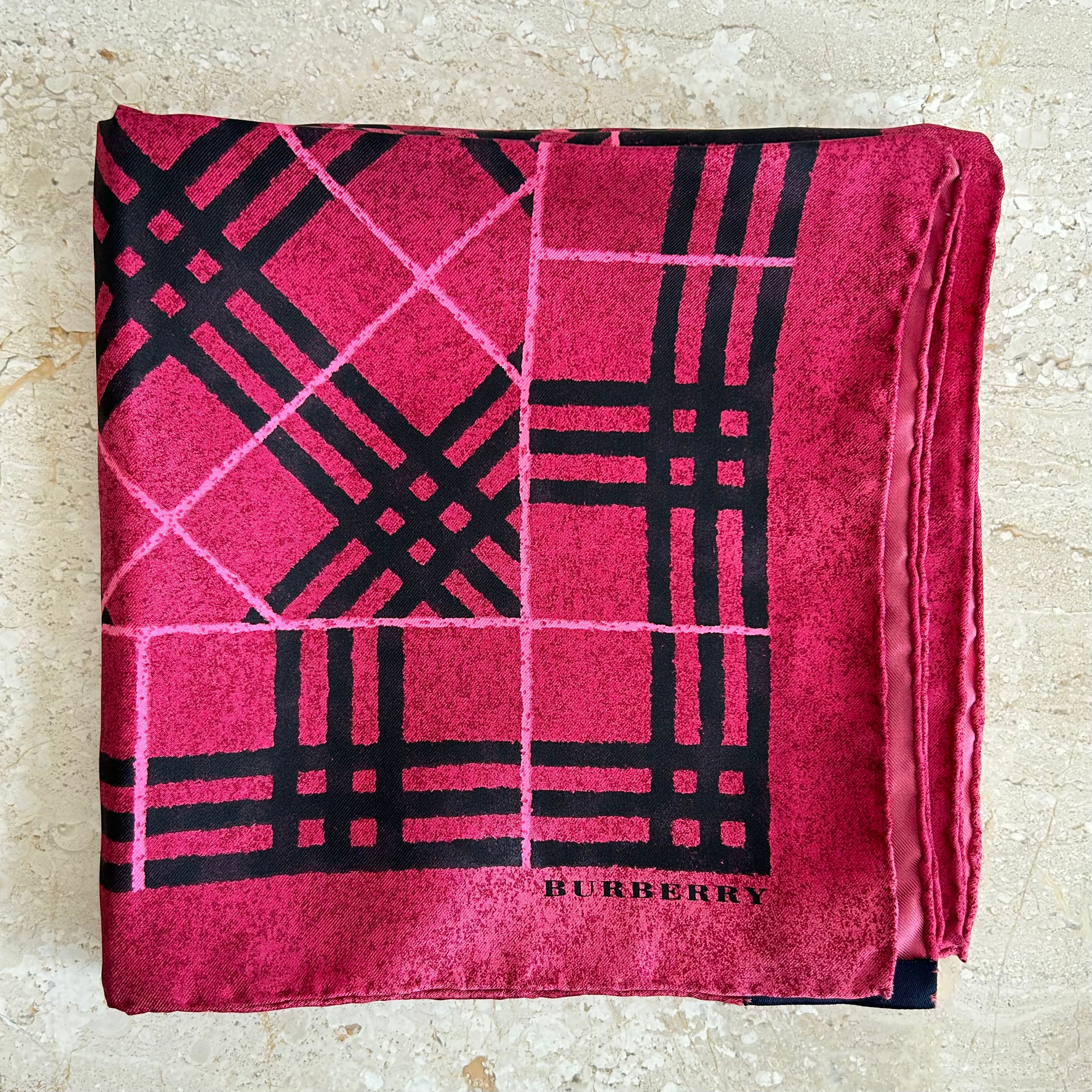 Pre-owned Burberry Pink Check Silk Scarf. This beautiful scarf is crafted from 100% silk and showcases the iconic check pattern in bold dark pink and black tones. This timeless piece adds a pop of bold colour to any look!