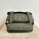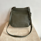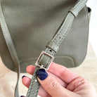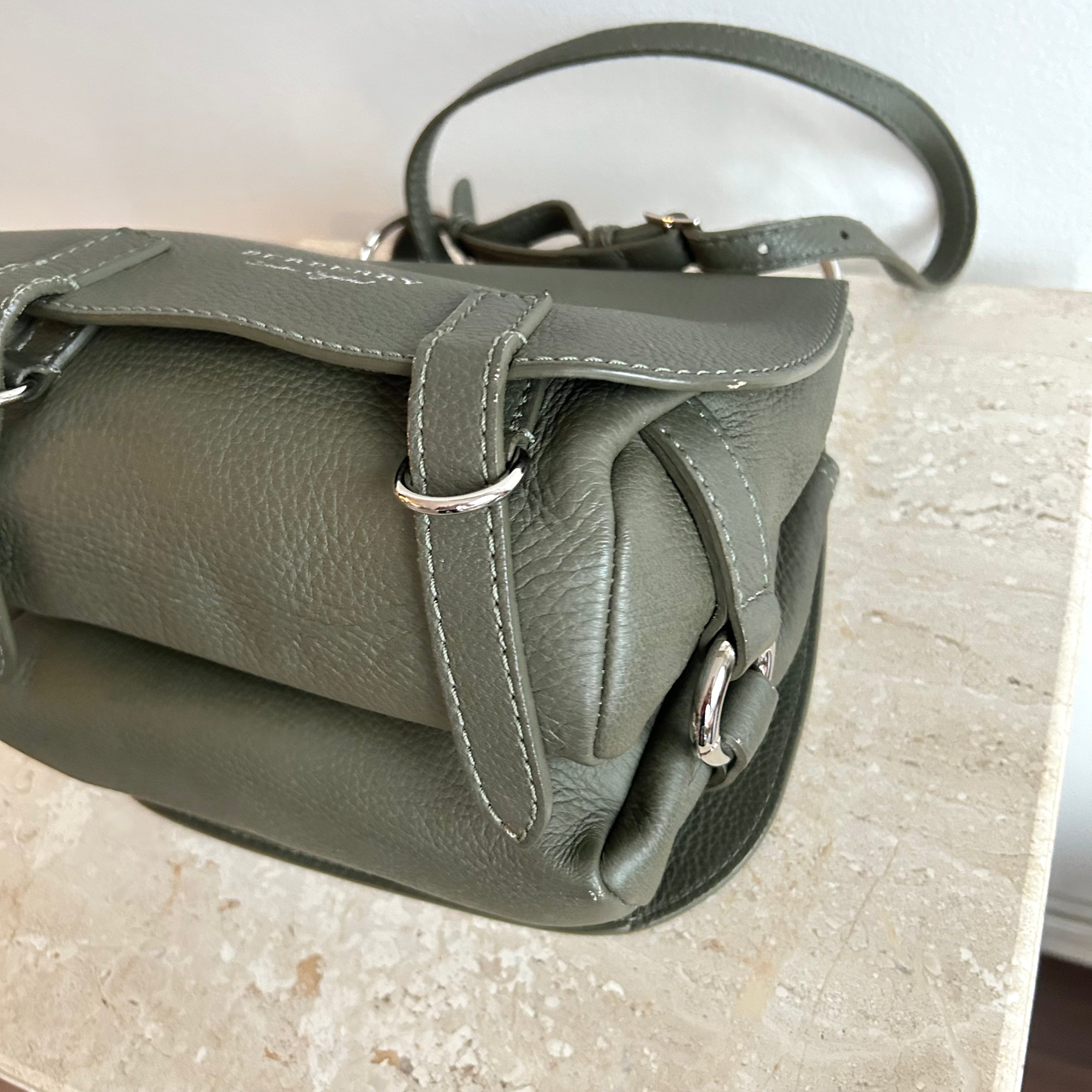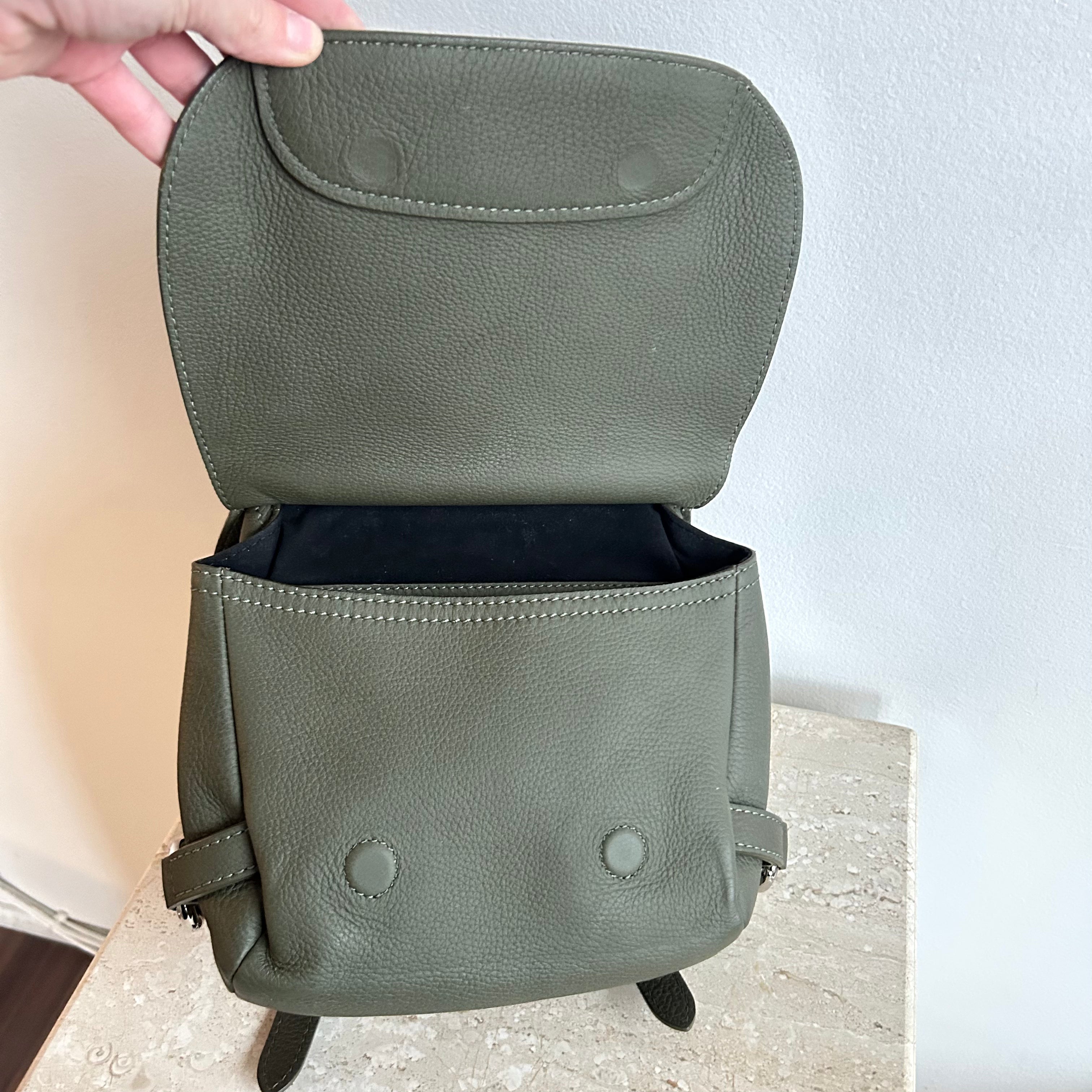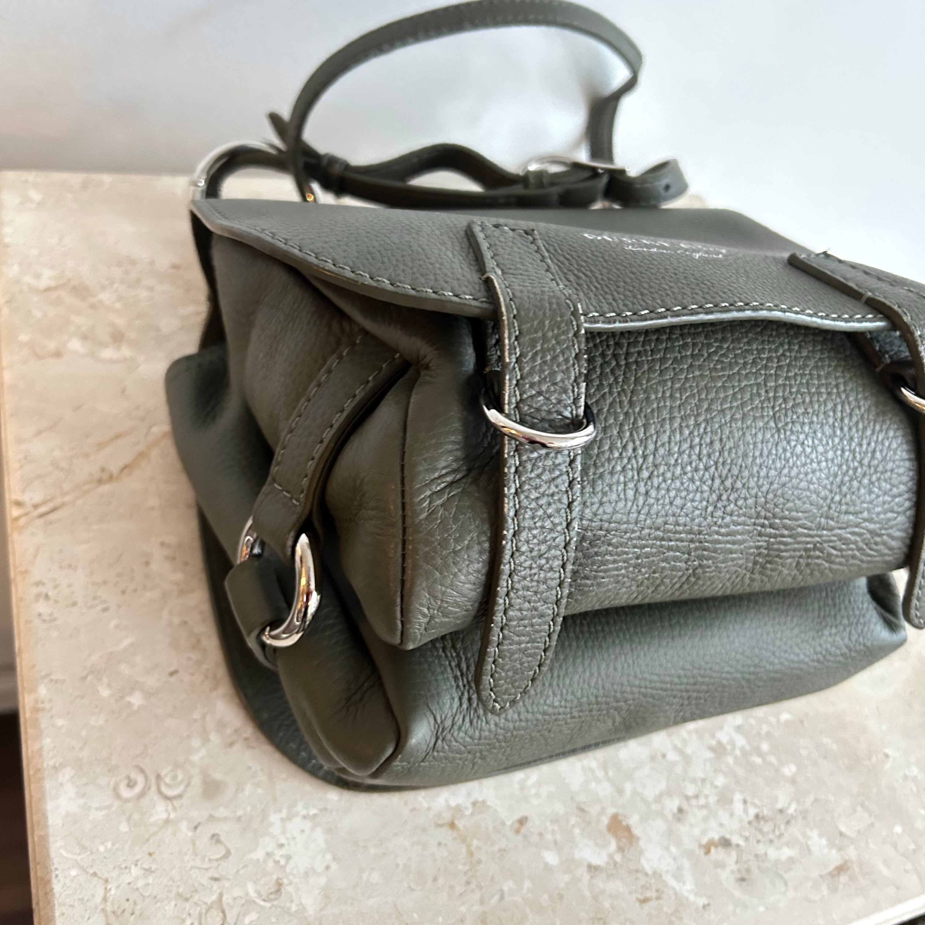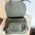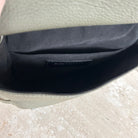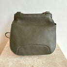 Pre-Owned Burberry Bridle Green Leather Crossbody Bag. Crafted in grained leather ina beautiful olive green with silver tone hardware. Front flap opens to a fabric lined interior hosting one slip pocket, and rear flap opens to a separate fabric lined compartment hosting one zip pocket. With an adjustable and removable leather strap, this bag can be worn on the shoulder or as a crossbody. A great size bag in the most beautiful green!