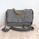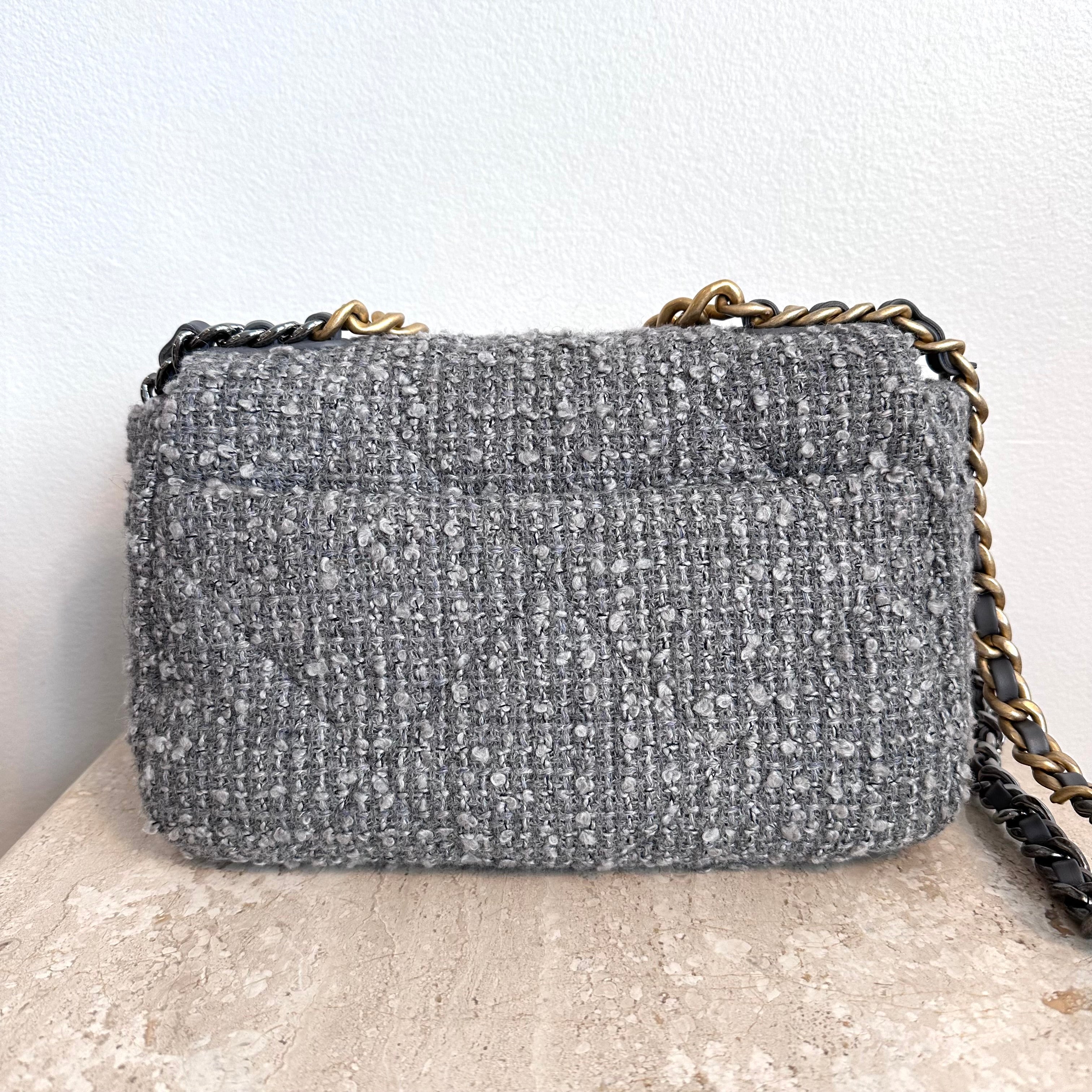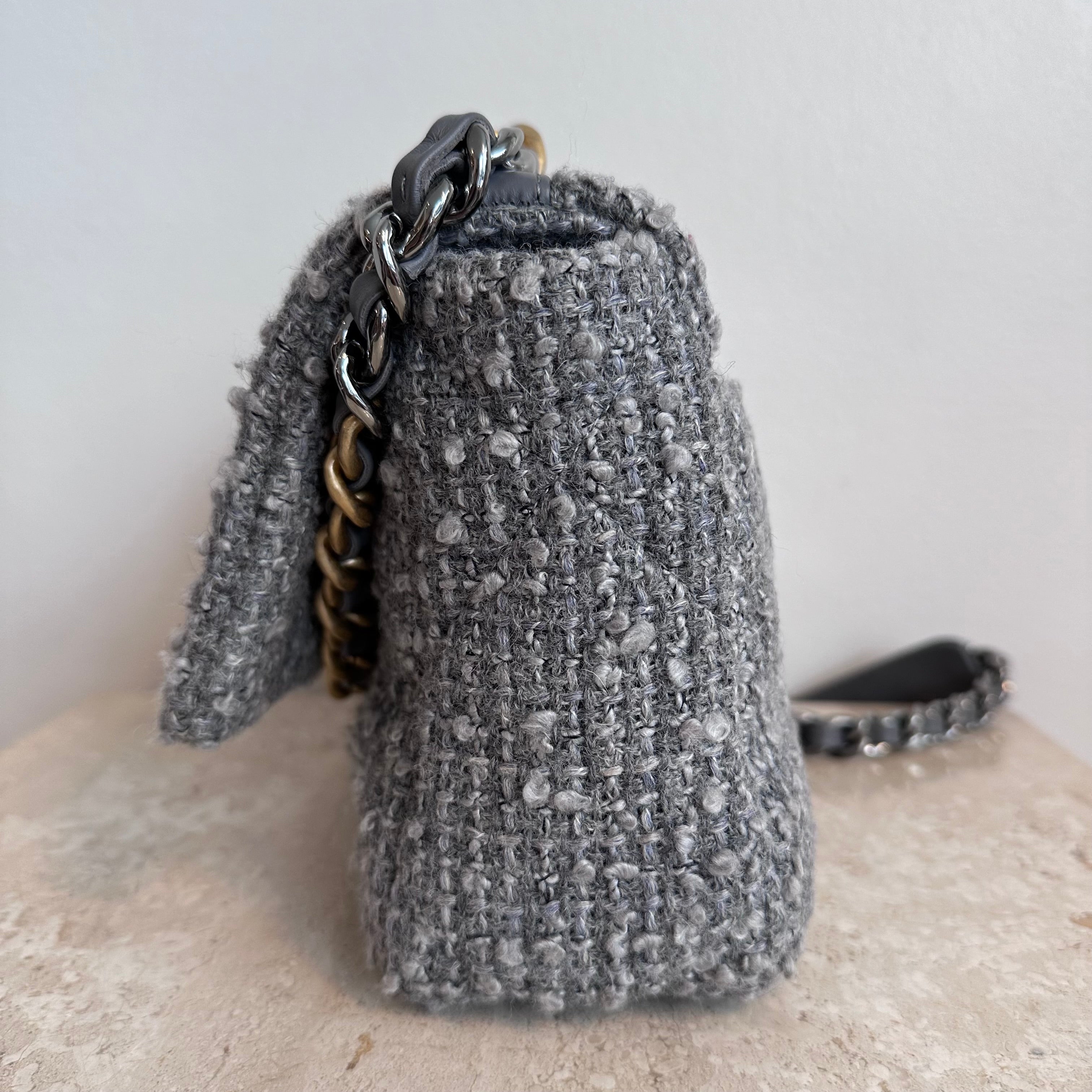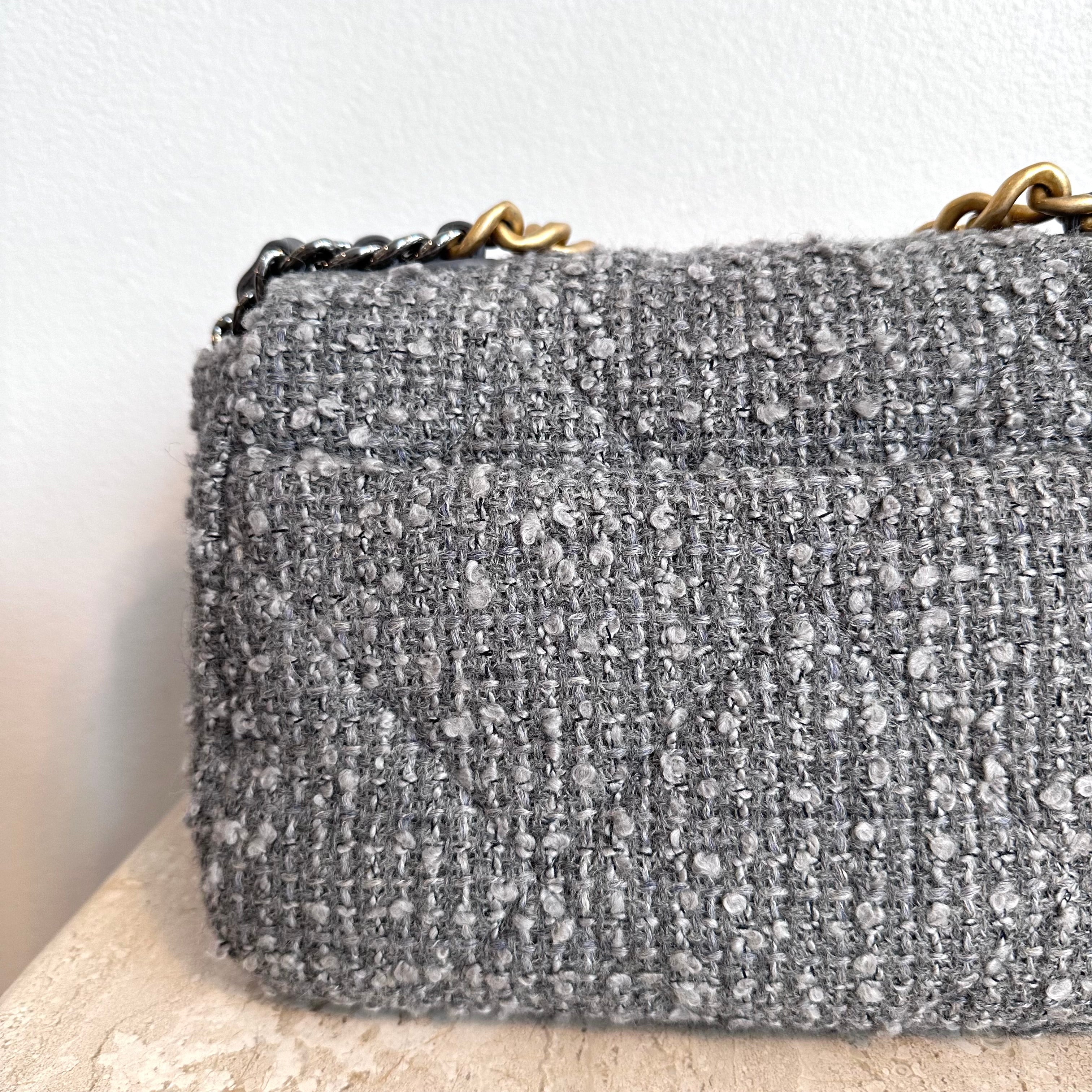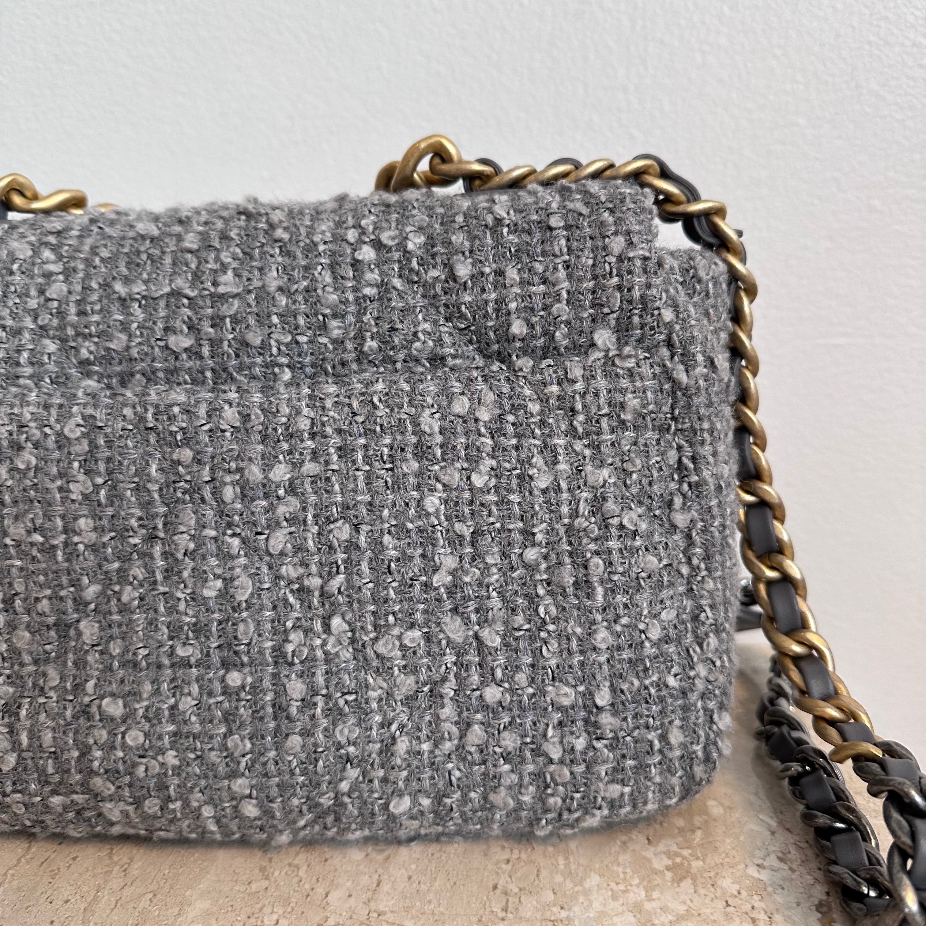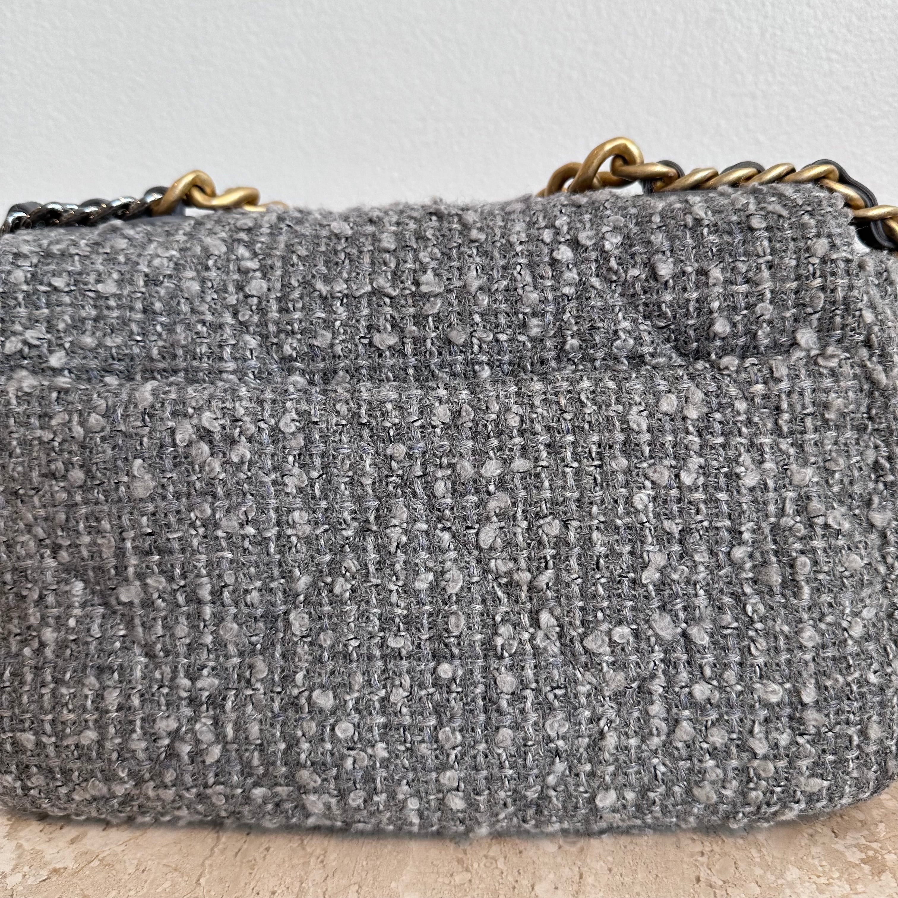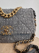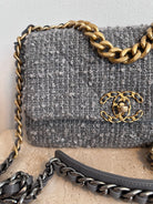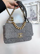 Pre-Owned CHANEL™ 19 Grey Tweed Flap Bag