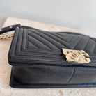 Pre-Owned CHANEL™ Black Medium Chevron Boy Bag