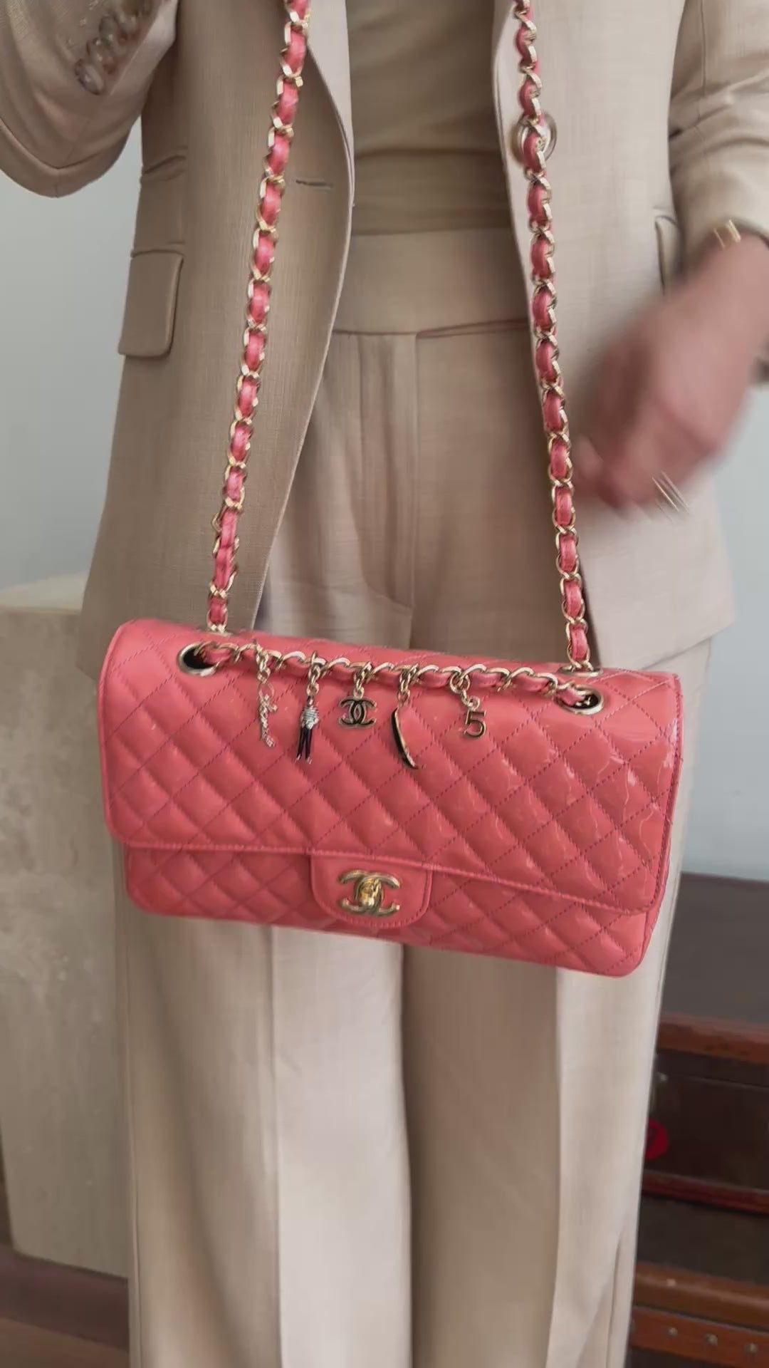 Pre-Owned CHANEL™ Coral Patent Ginza 5th Anniversary Limited Edition Charm Bag