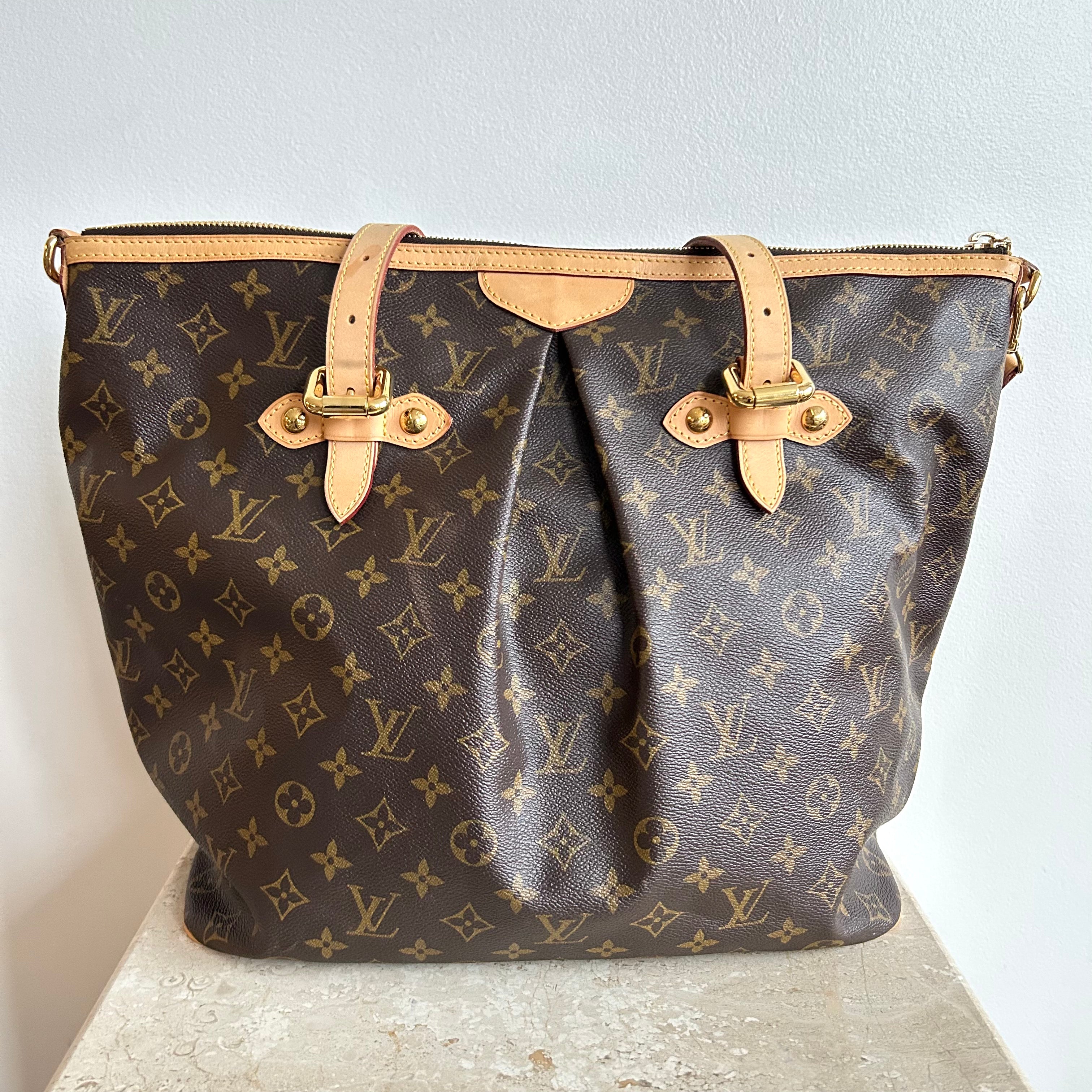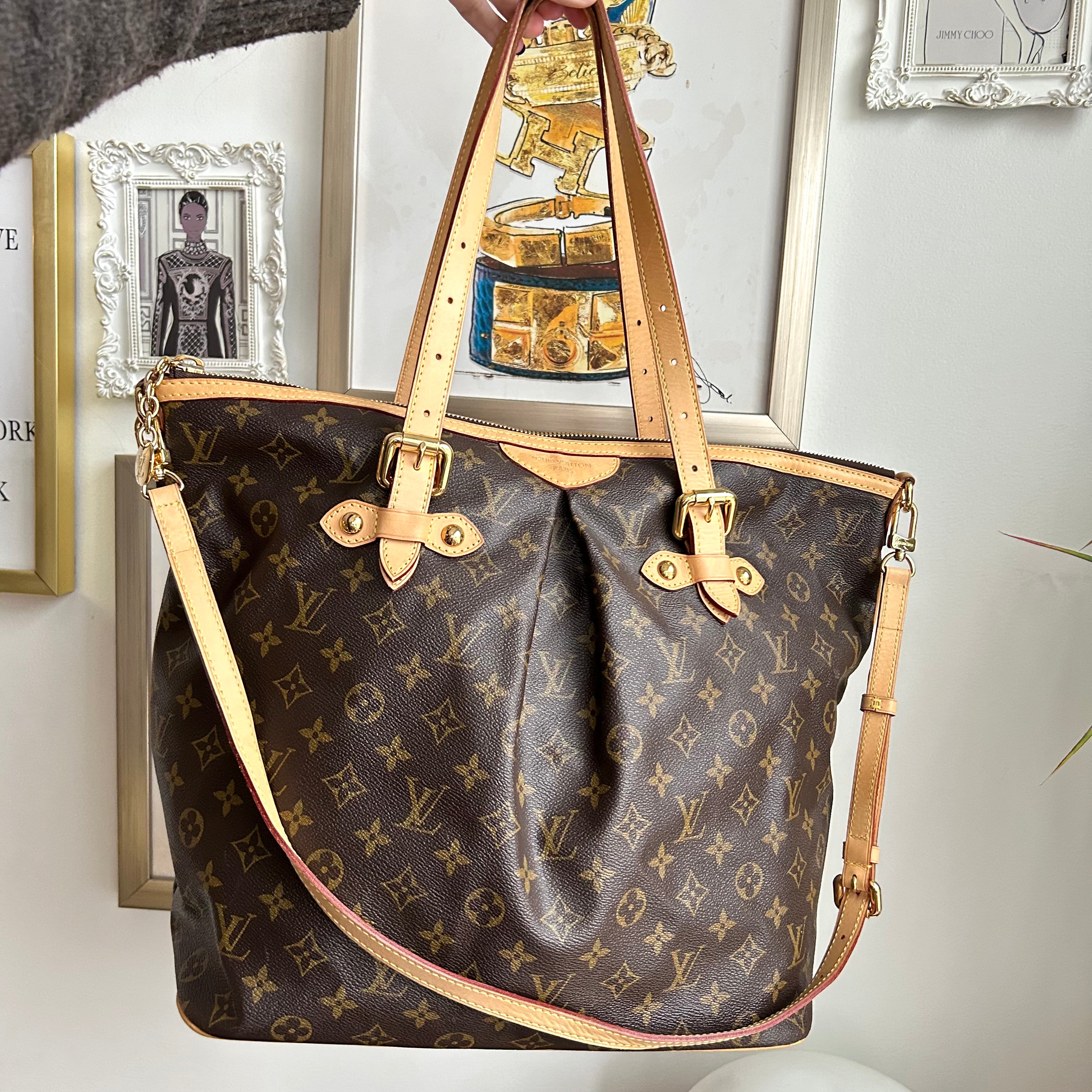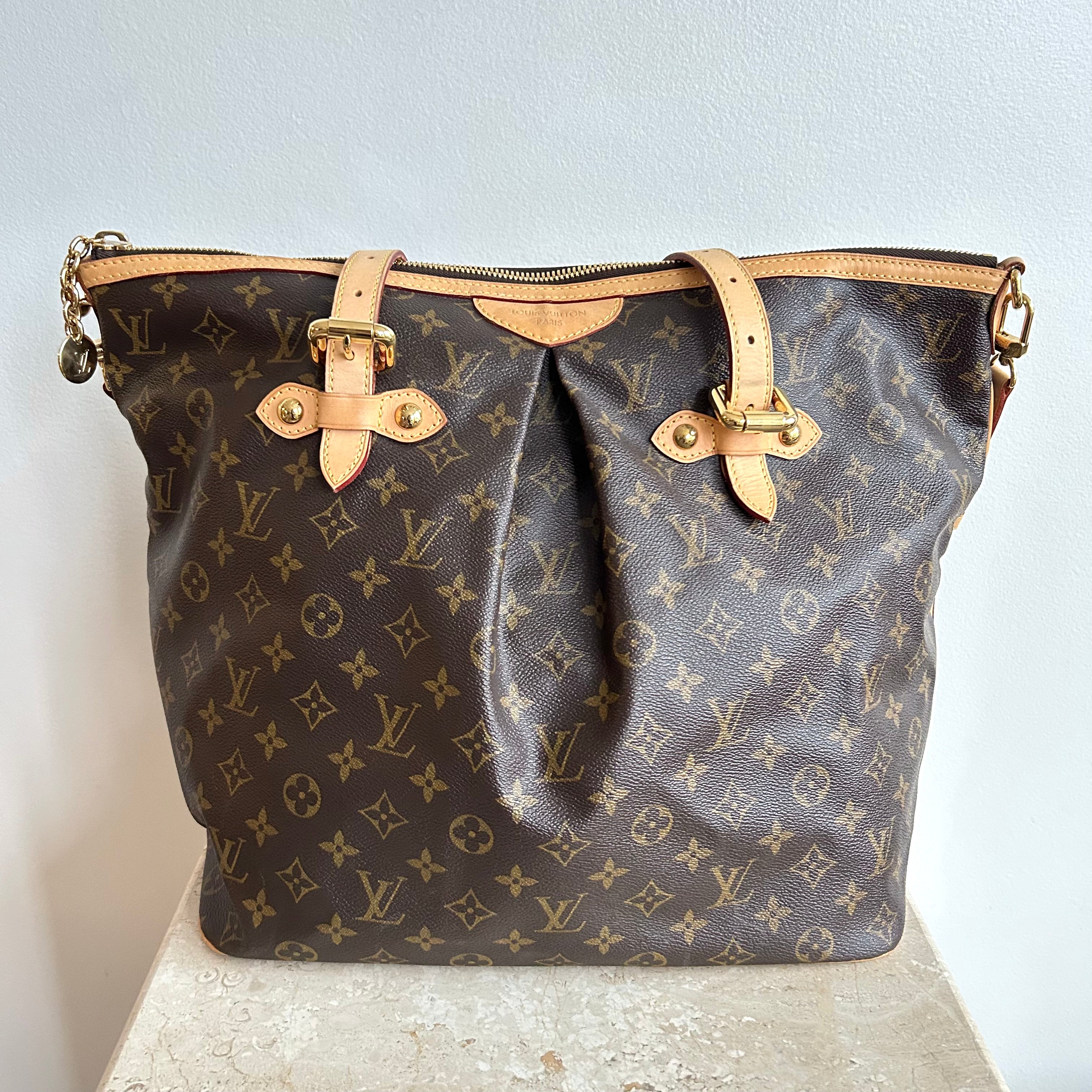 Pre-Owned Louis Vuitton Monogram Palermo GM. This perfect large tote has not only all the space you need for your daily use, but it has a full zip opening and adjustable and removable shoulder strap with adjustable top handles. The pinched pleat monogram adds softness to this bag. The interior hosts one pouch pocket and two slip pockets. This is a great bag!!! They don't make them like this anymore!