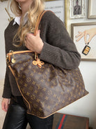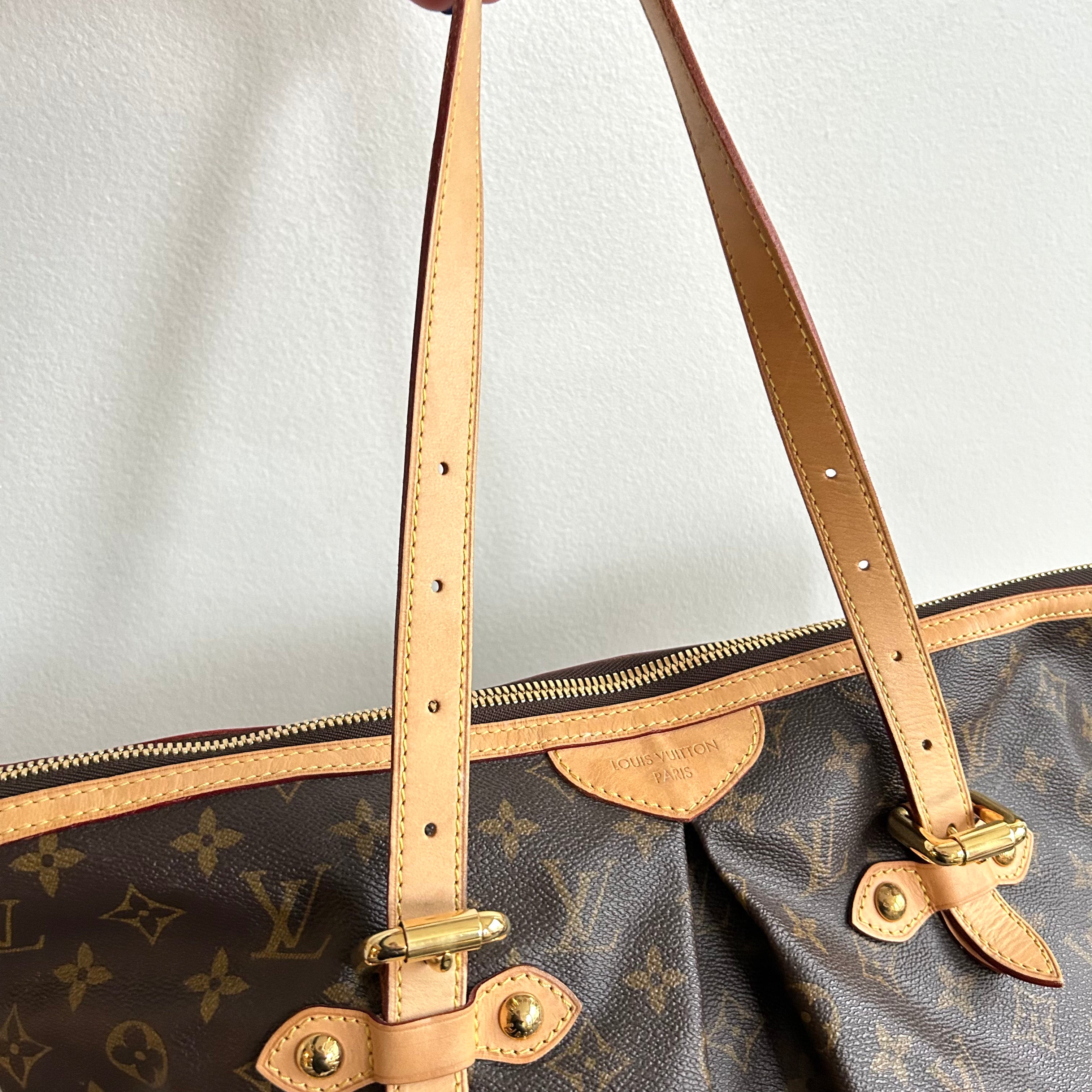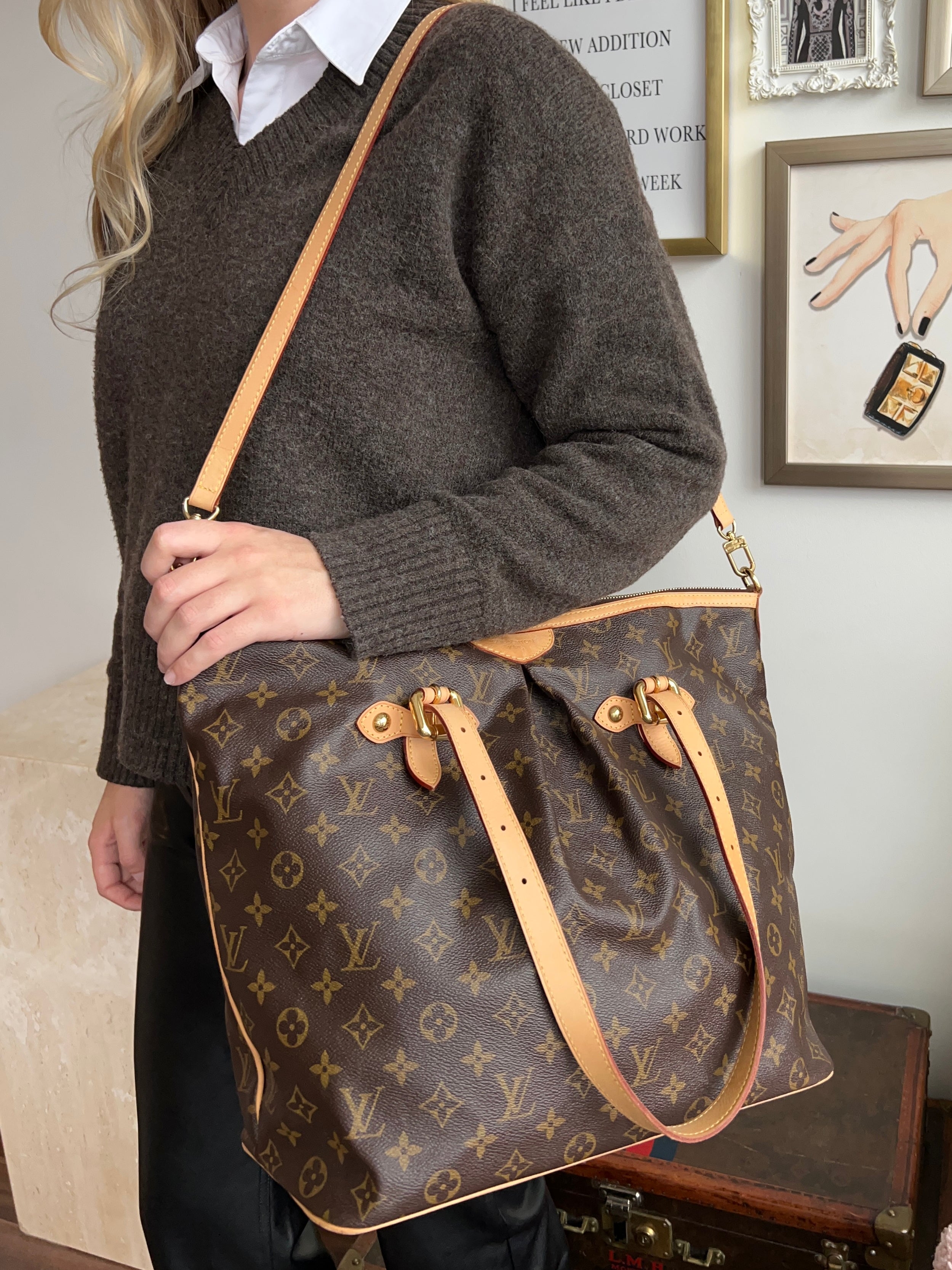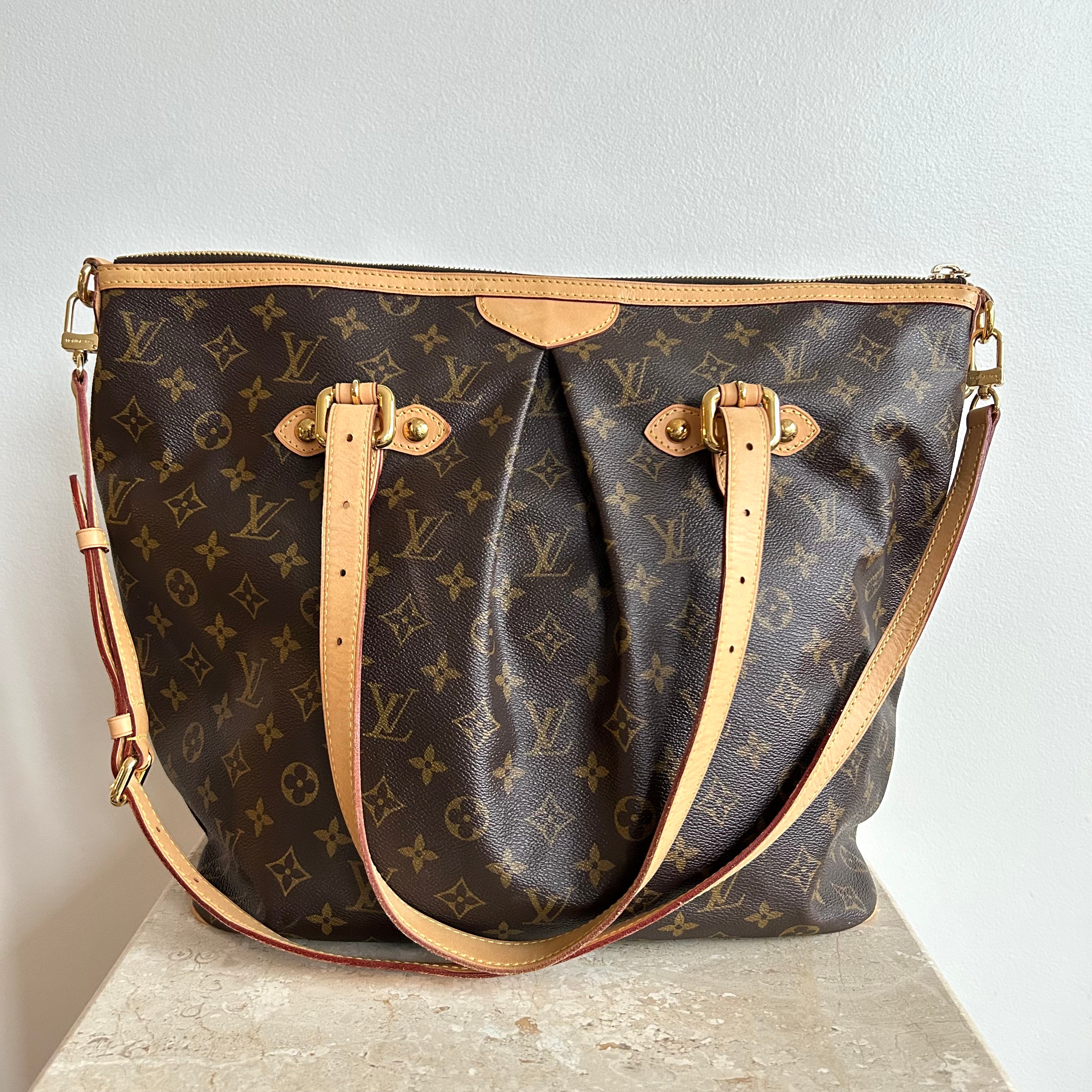 Pre-Owned Louis Vuitton Monogram Palermo GM. This perfect large tote has not only all the space you need for your daily use, but it has a full zip opening and adjustable and removable shoulder strap with adjustable top handles. The pinched pleat monogram adds softness to this bag. The interior hosts one pouch pocket and two slip pockets. This is a great bag!!! They don't make them like this anymore!