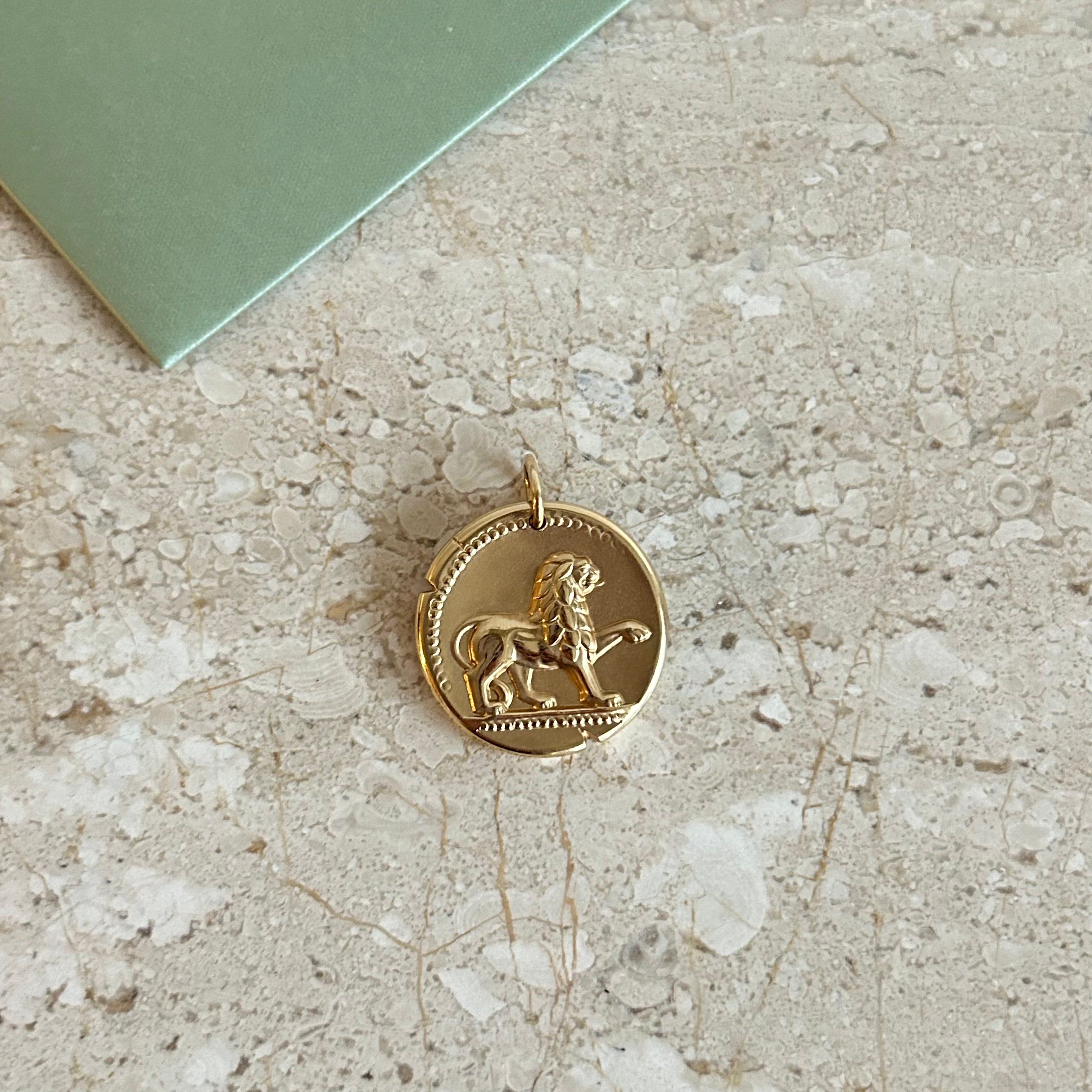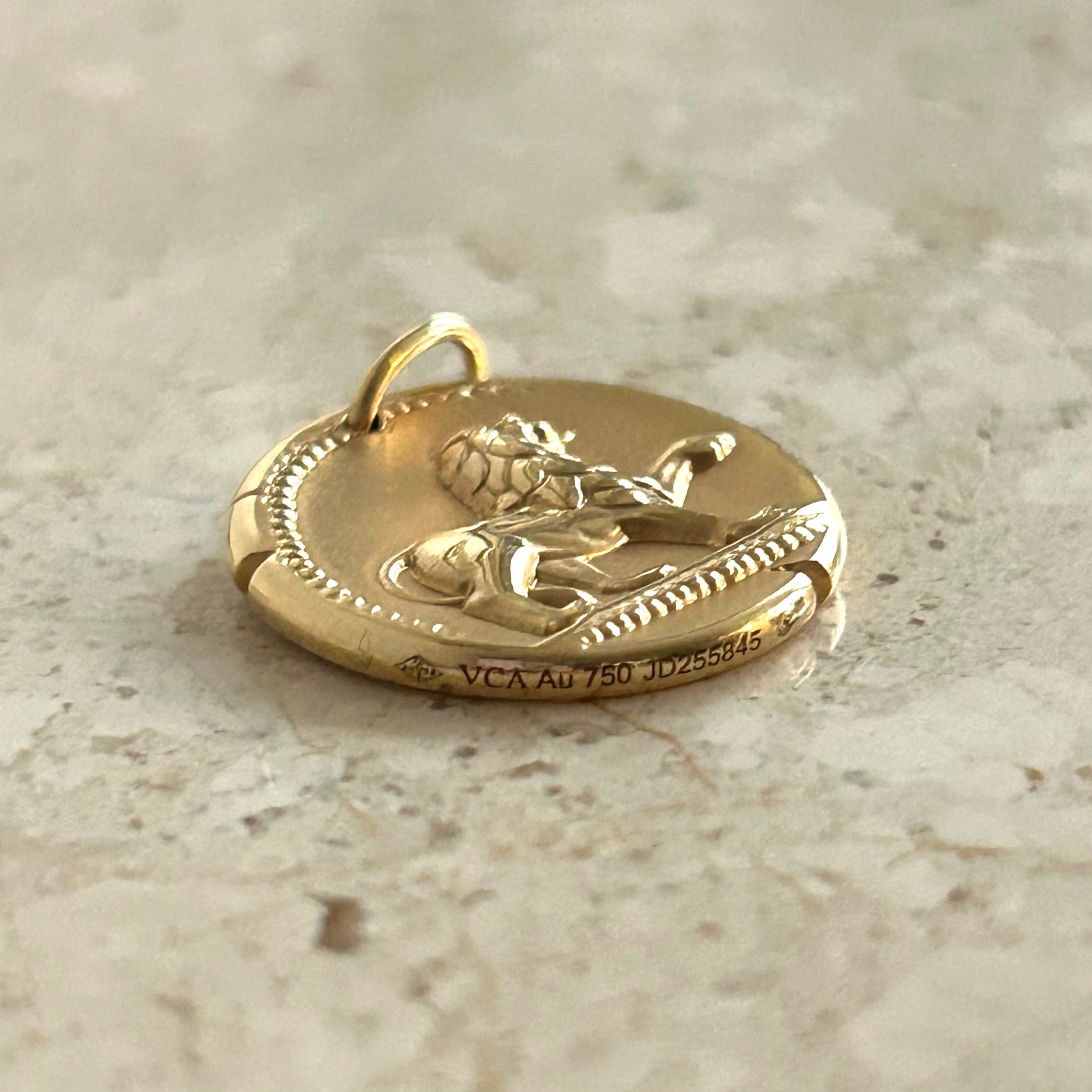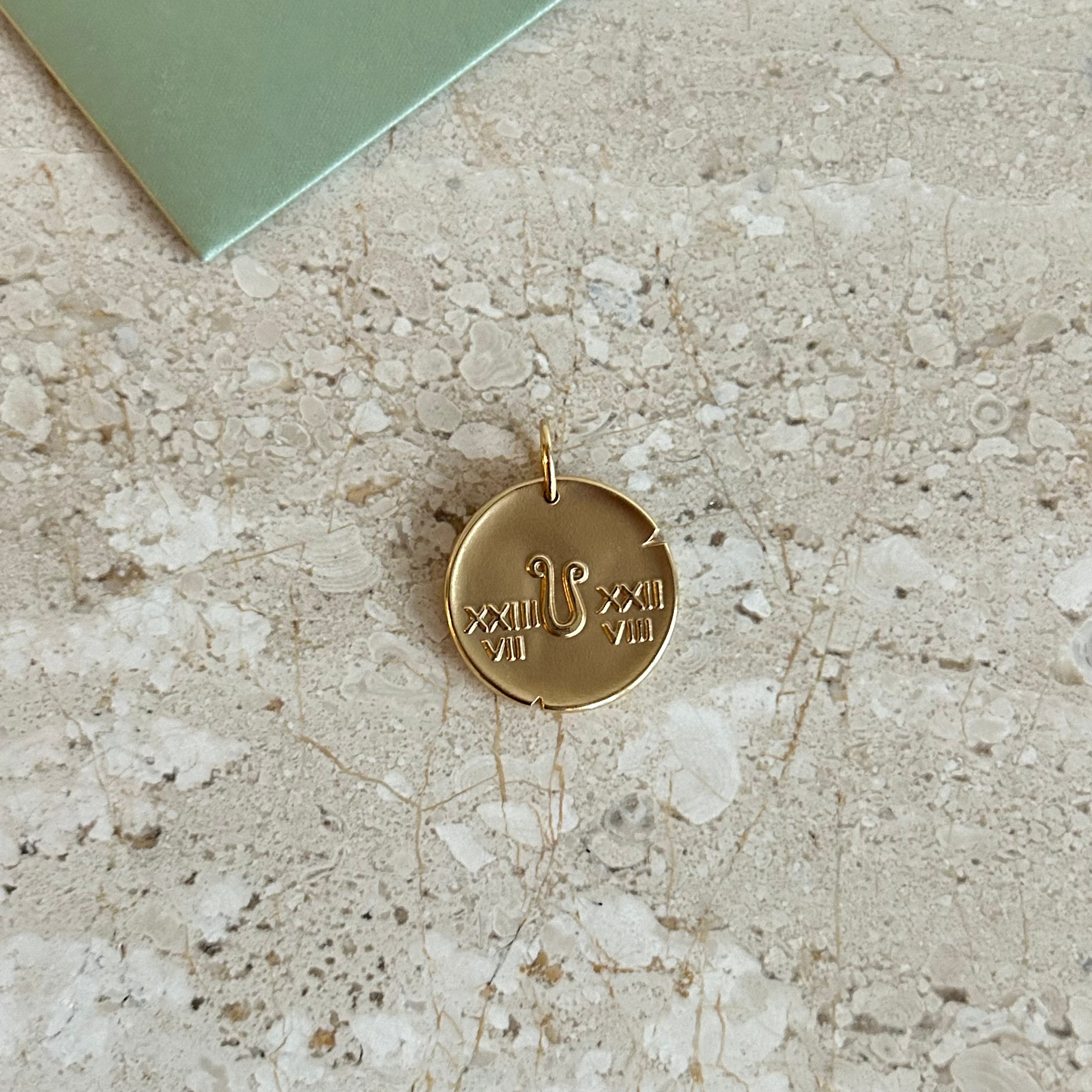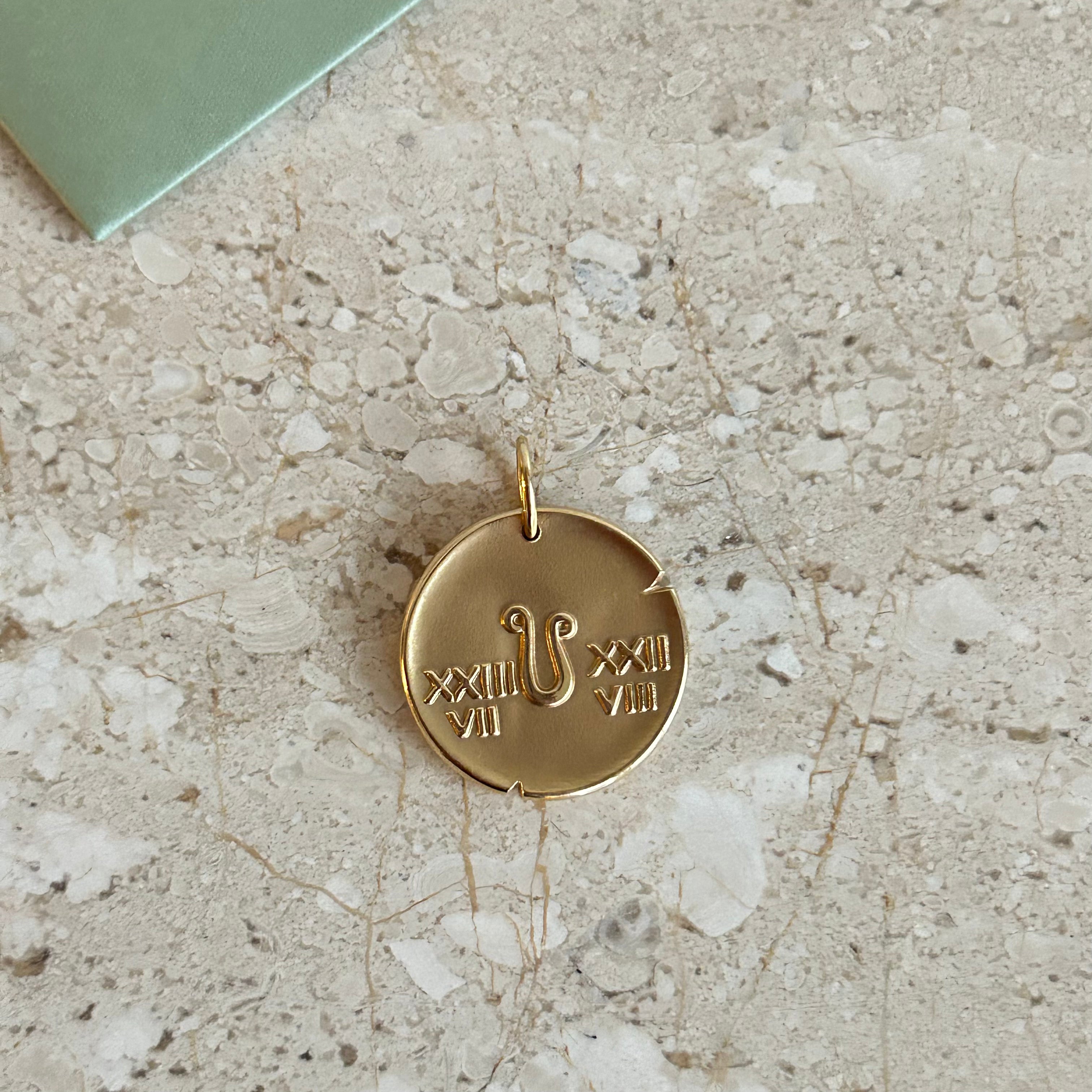 Pre-Owned Van Cleef & Arpels 18K Gold Leo Pendant. This gold disc pendant features the leo symbol on the front and roman numerals on the back. This is the most beautiful Charm Pendant!