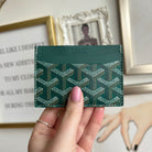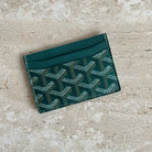 Pre-Owned Goyard Saint-Sulpice Card Holder. This card holder is crafted of printed canvas with a leather lining. It has a single interior pocket and include four card slots. Such a stylish colour!
