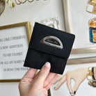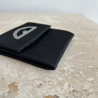 Pre-Owned Dior Vintage Malice Card Case. Made in black nylon with silver tone hardware, this card case shows the house logo on a leather tab. Magnetic closure opens to a single compartment fabric lined interior. The perfect grab and go wallet!