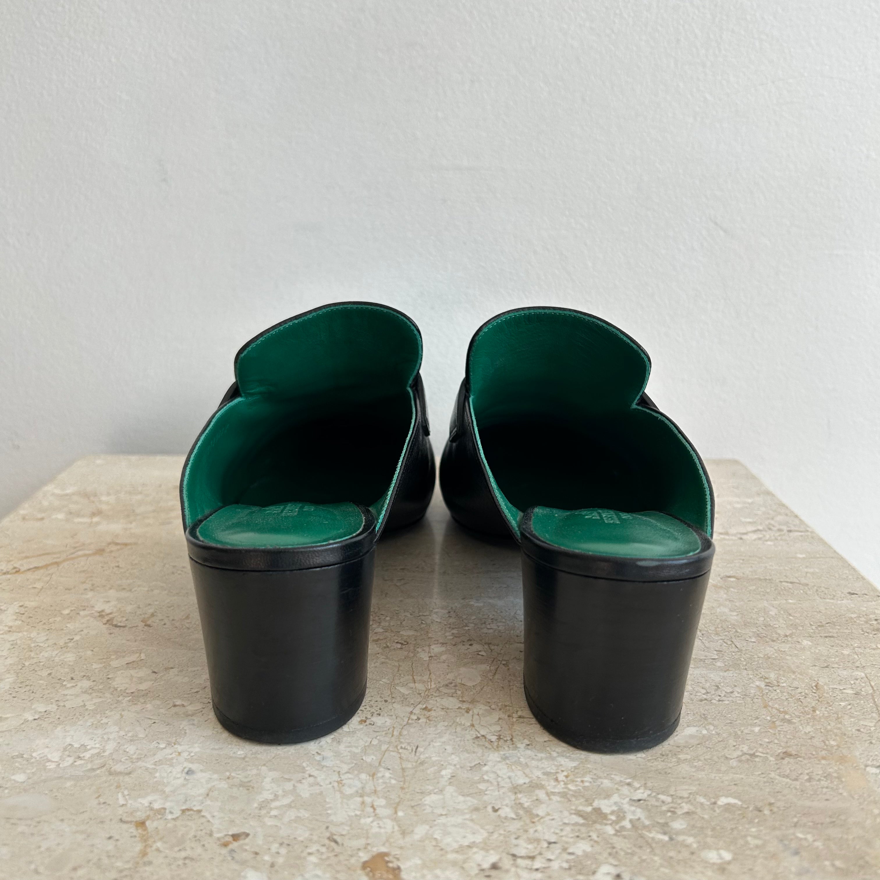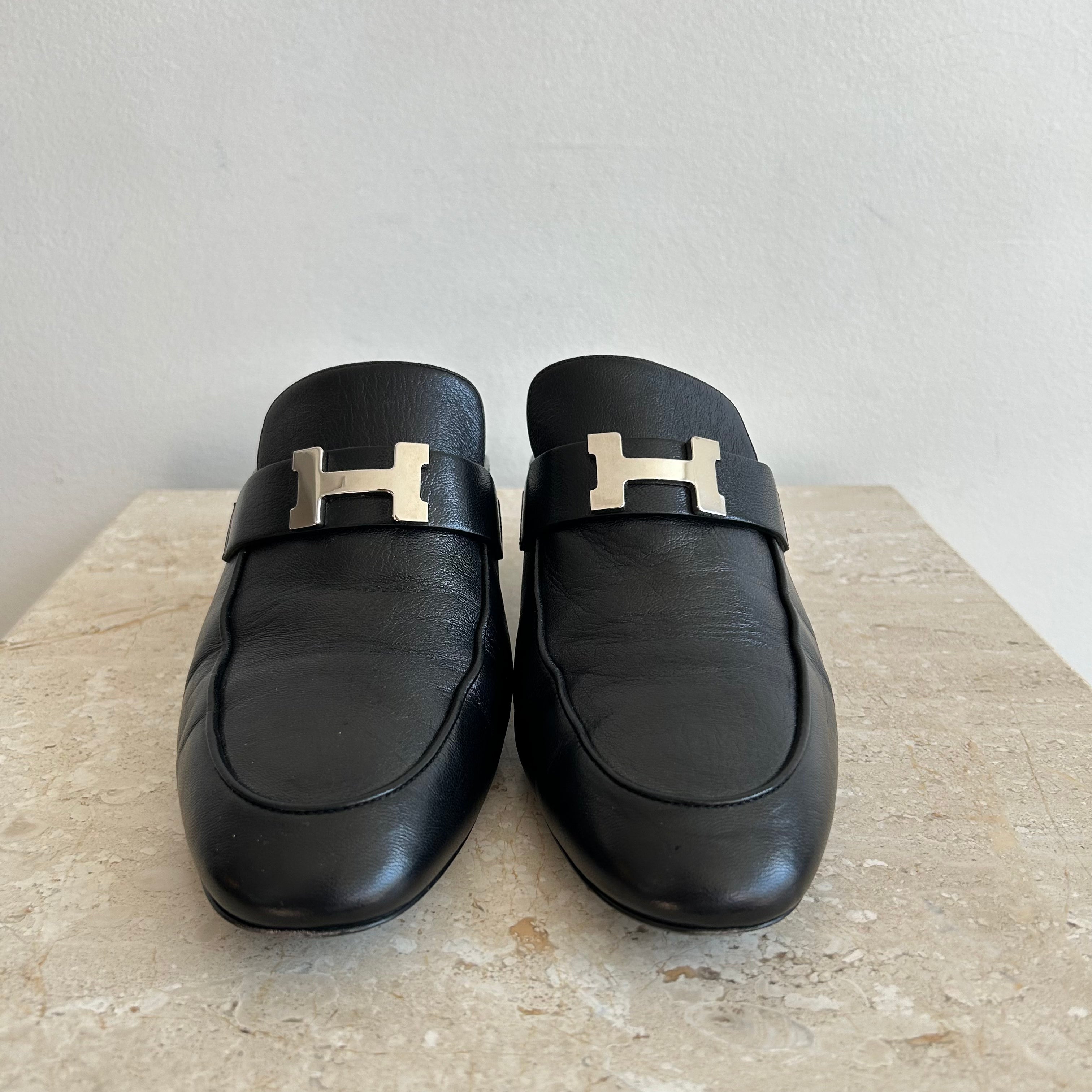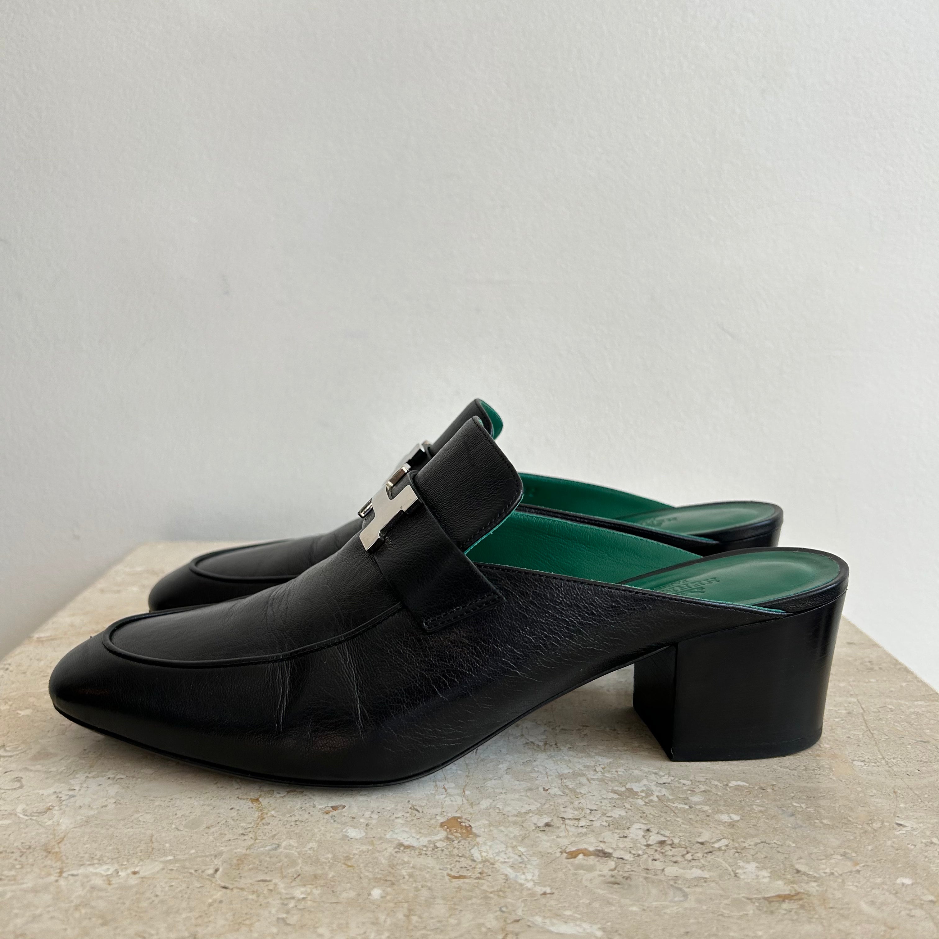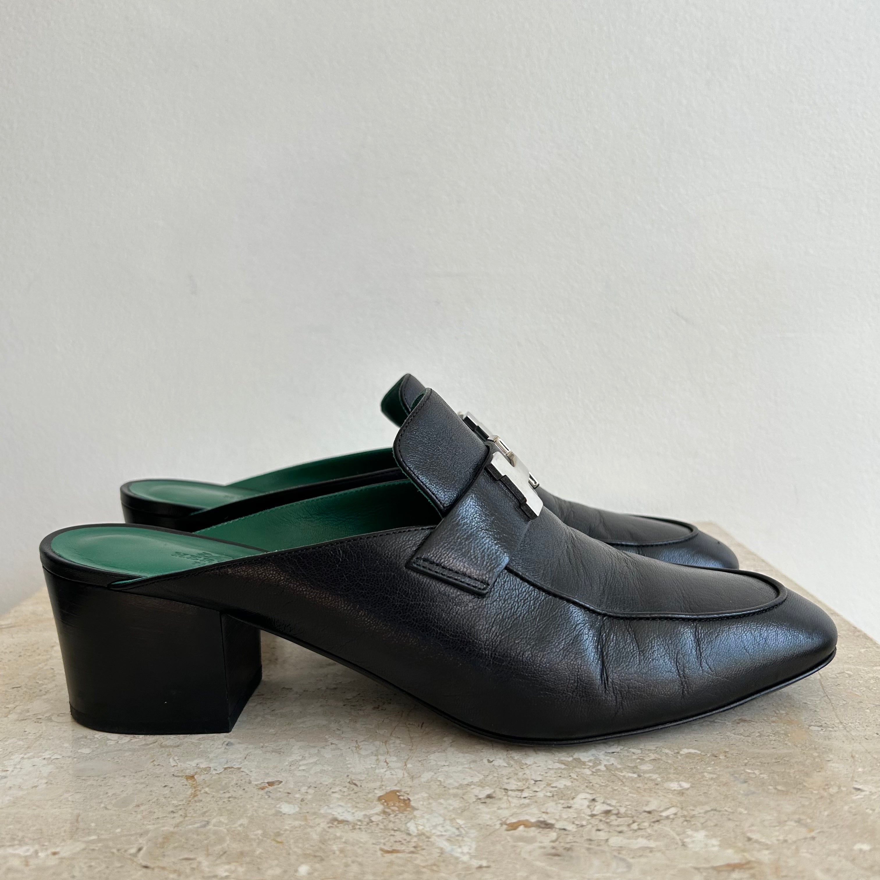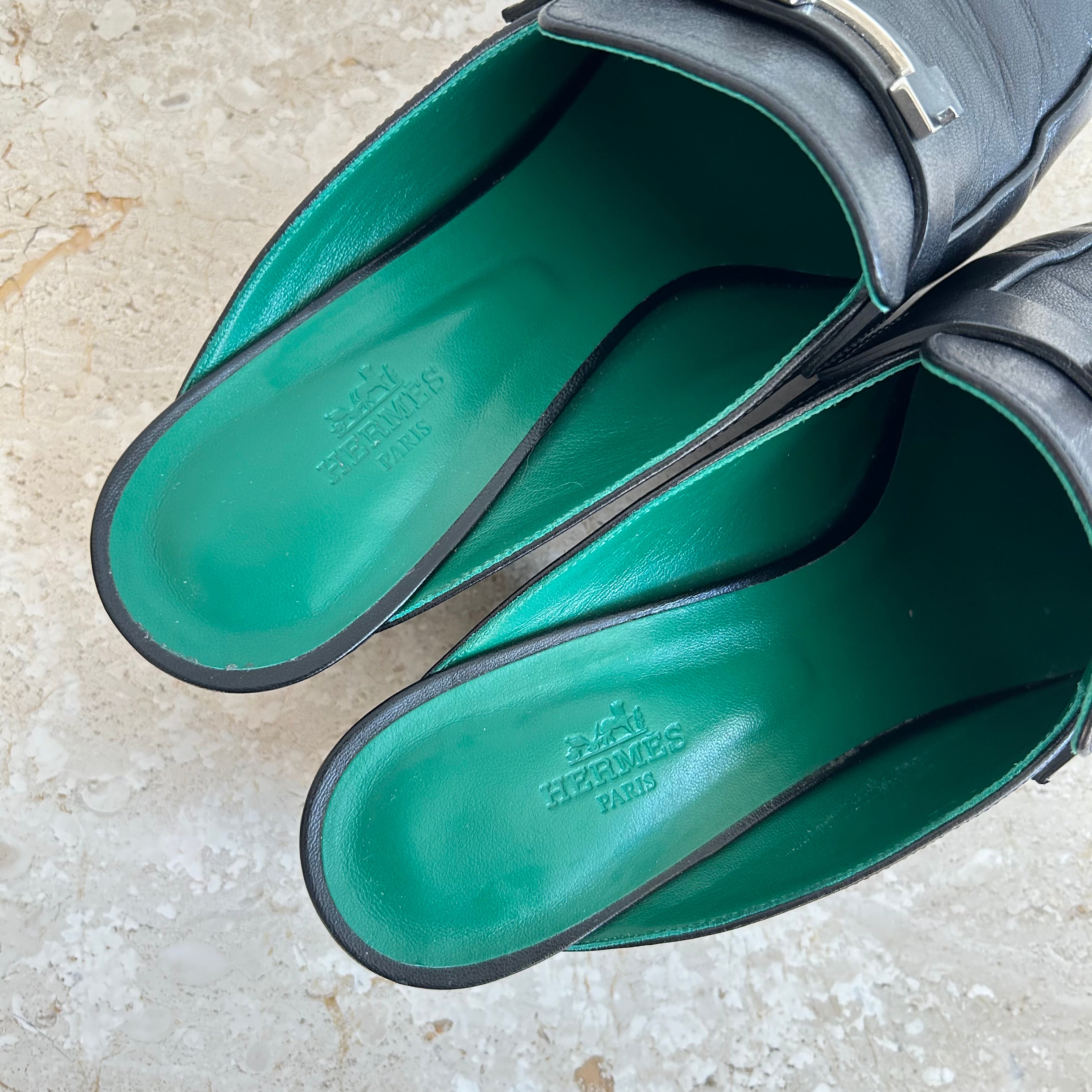 Pre-Owned HERMES Black Leather Paradis Mule Size 41