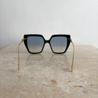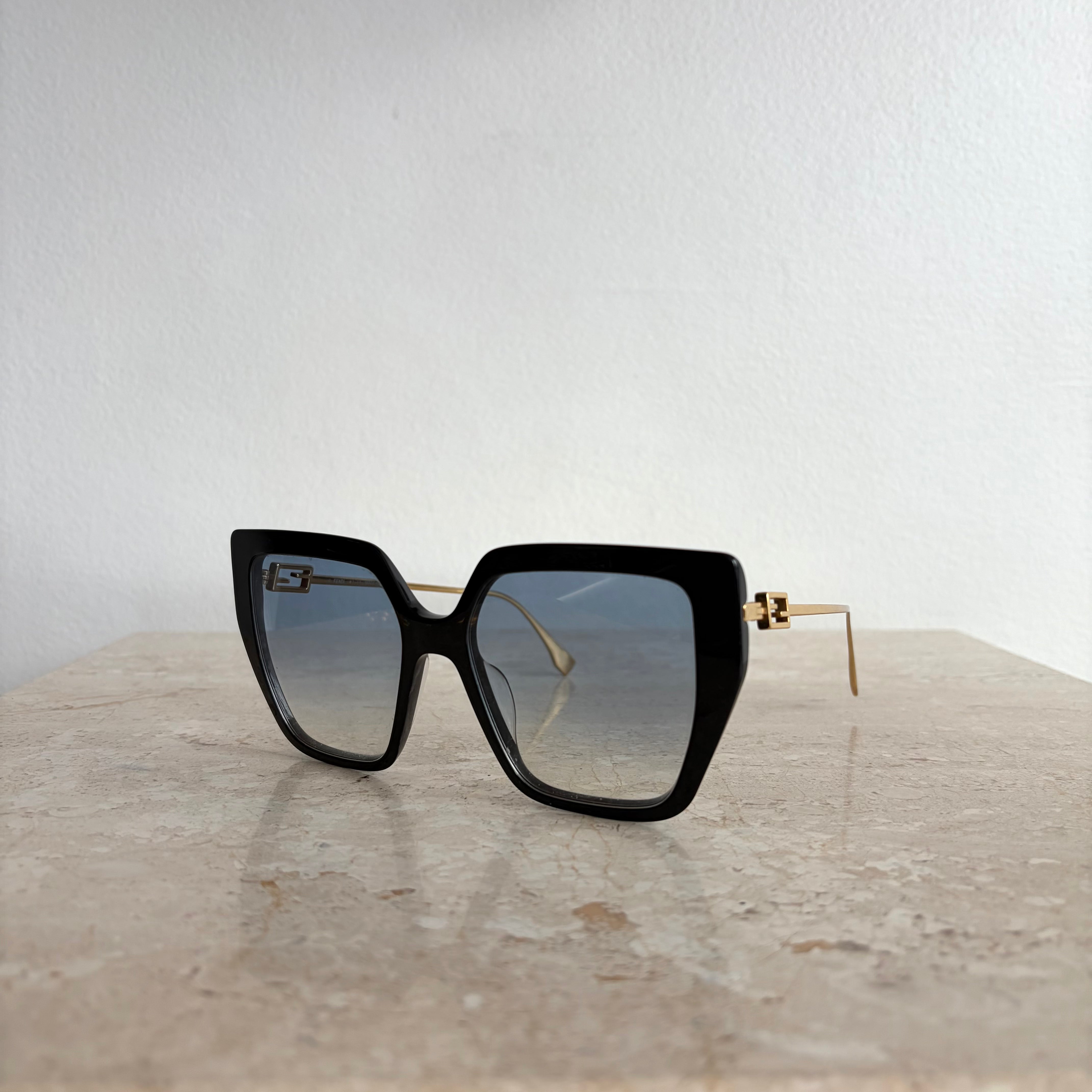 Pre-Owned Fendi FE40012U Sunglasses. Black oversized frames with gradient blue lenses and gold tone temple arms with the house logo. These are so fun and trendy!