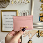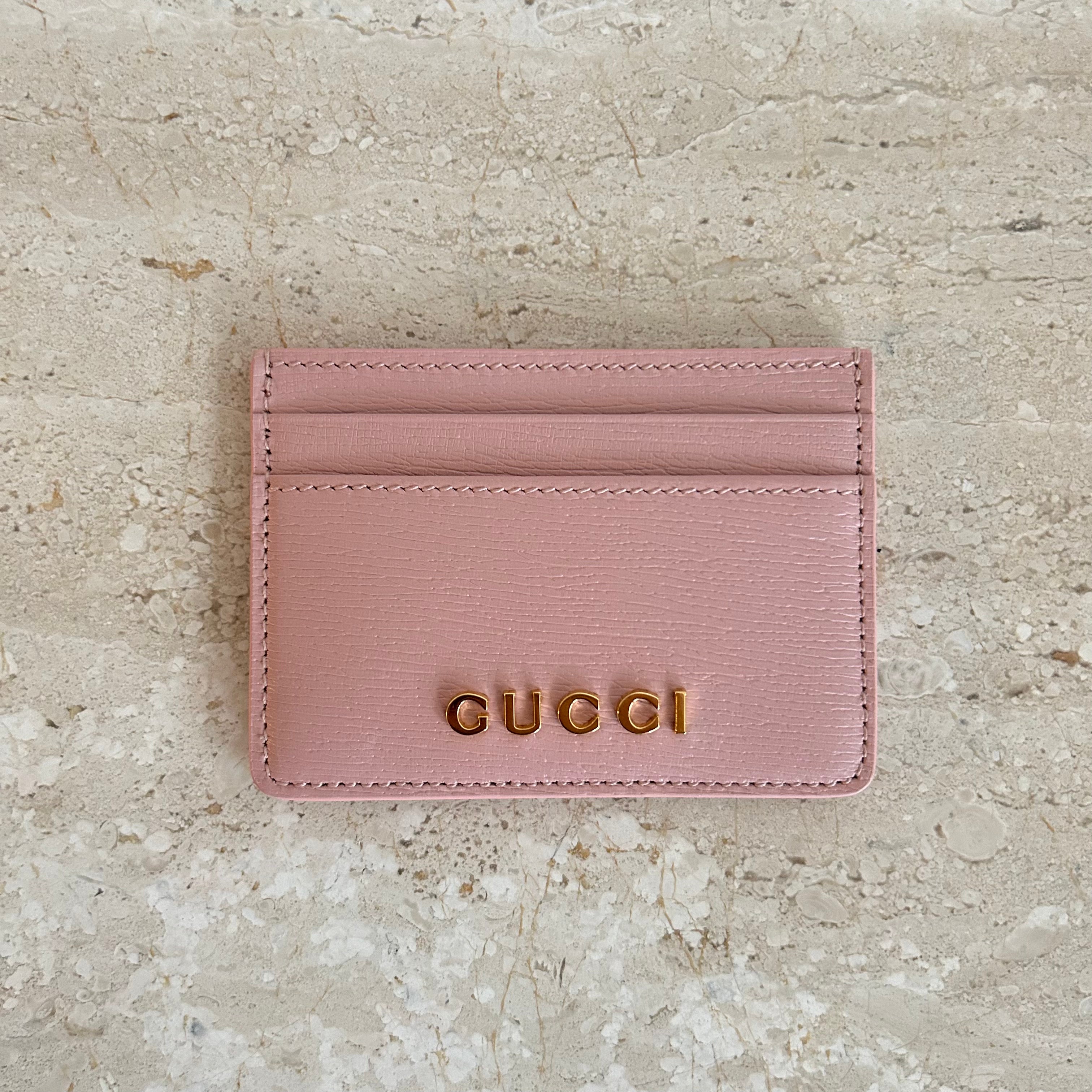 Pre-Owned Gucci Pink Leather Cardcase. Crafted in pink leather with the house logo in gold tone hardware across the front. Two card slots on each side and an open compartment for more cards. Perfect for daily use and a fab gift!
