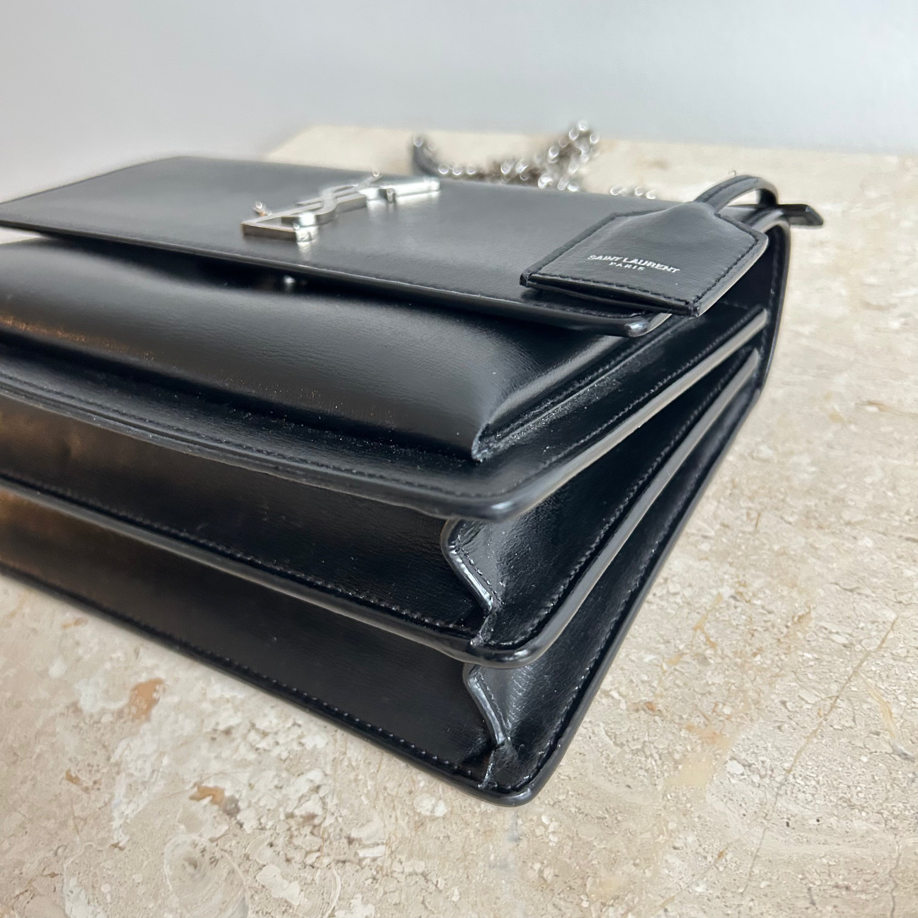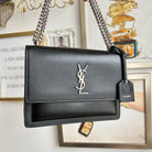 Pre-Owned SAINT LAURENT Black Leather Sunset Medium Chain Bag