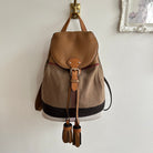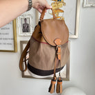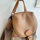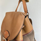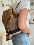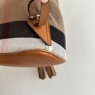 Pre-Owned Burberry Canvas Chiltern Backpack. Crafted in giant nova check canvas with brown leather trim. Light gold tone hardware includes a faux front buckle. Magnetic button and drawstring closure reveals an unlined interior hosting one zip pocket. Brown leather top handle and adjustable backpack straps. The perfect backpack for daily use!