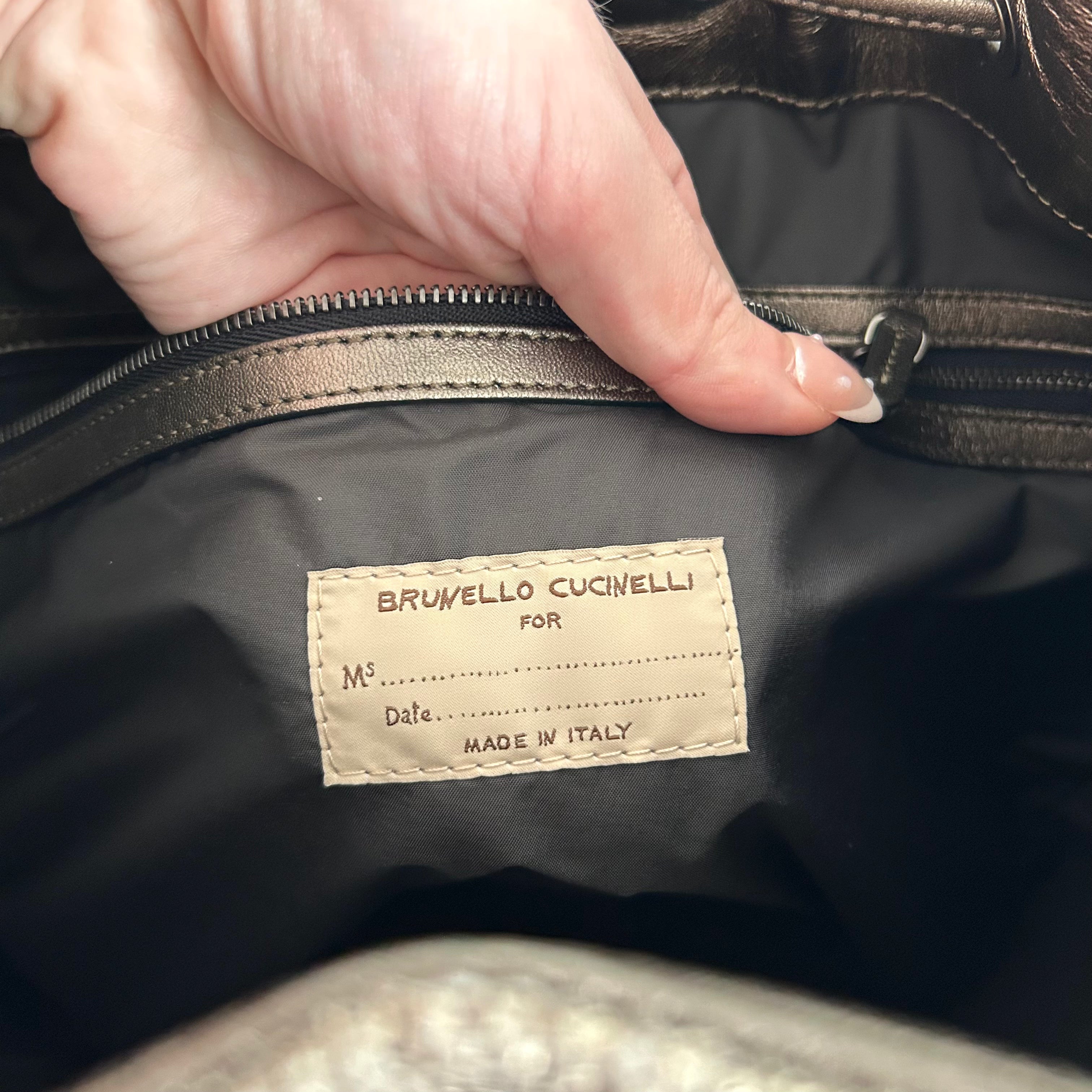 Pre-Owned BRUNELLO CUCINELLI Metallic Canvas Fringe Backpack