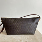 Pre-Owned Saint Laurent Le Monogramme Shoulder Bag. Crafted in monogram coated canvas with a brown leather shoulder strap. Bronze tone hardware including a top zip that opens to a fabric lined interior hosting one zip pocket. The perfect daily sized bag!