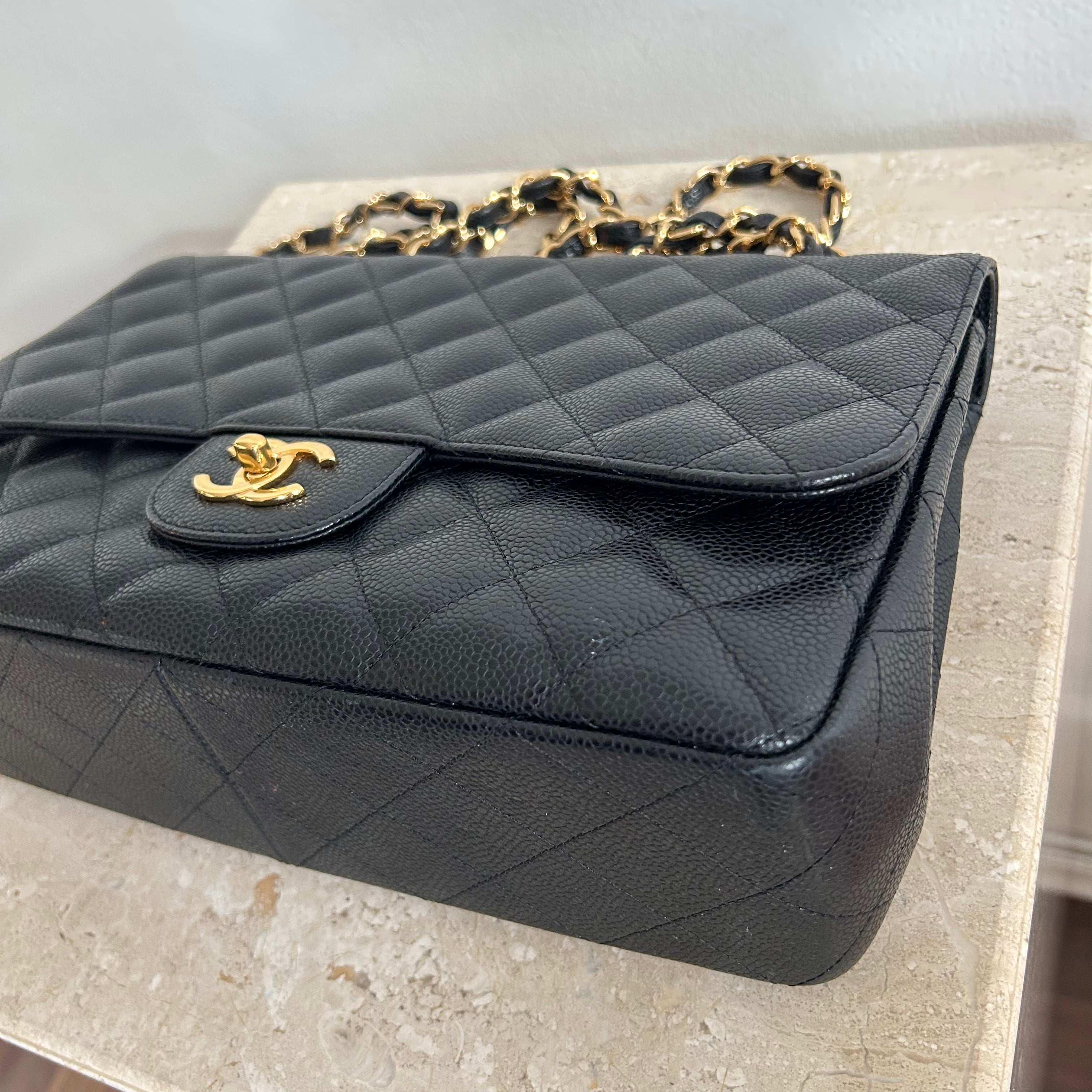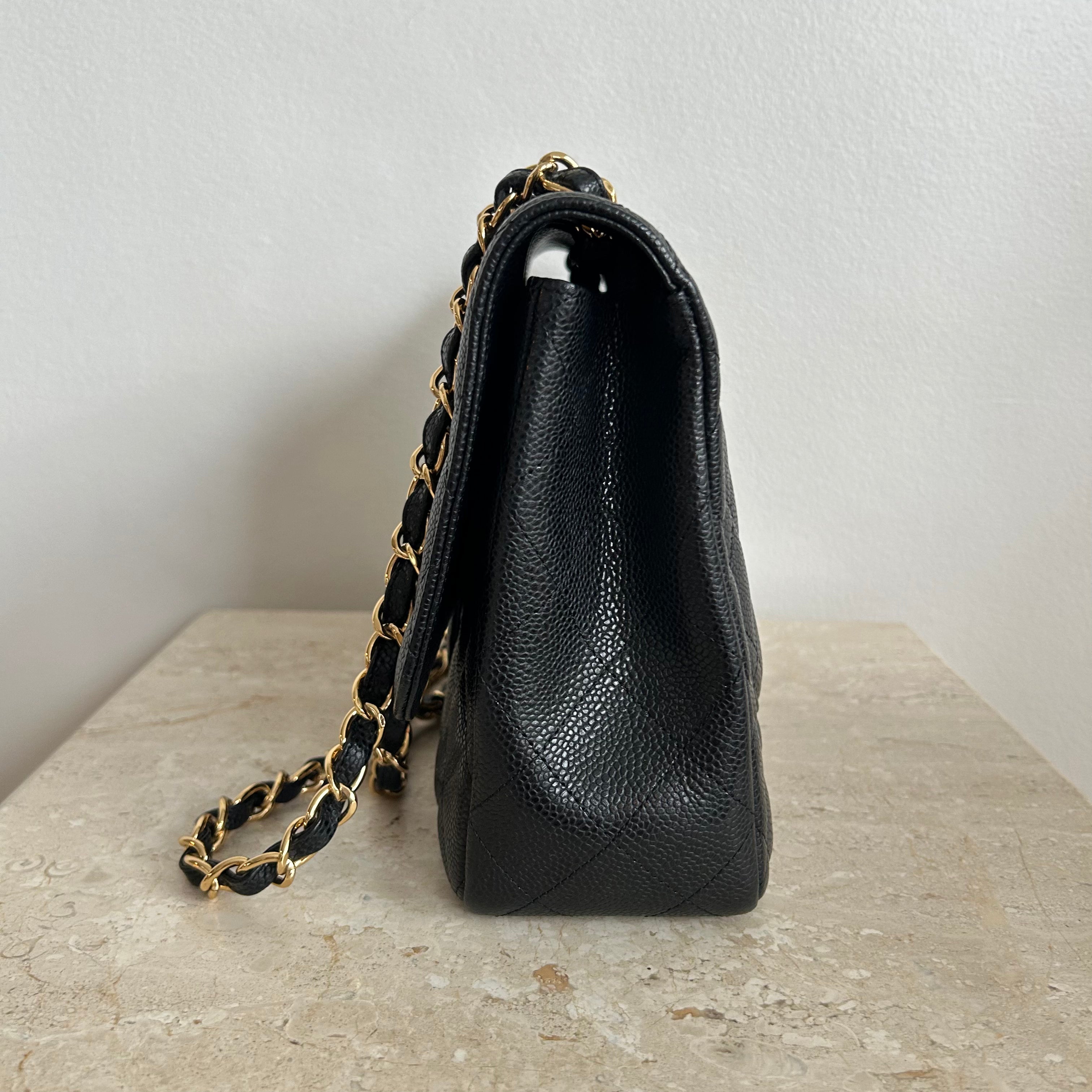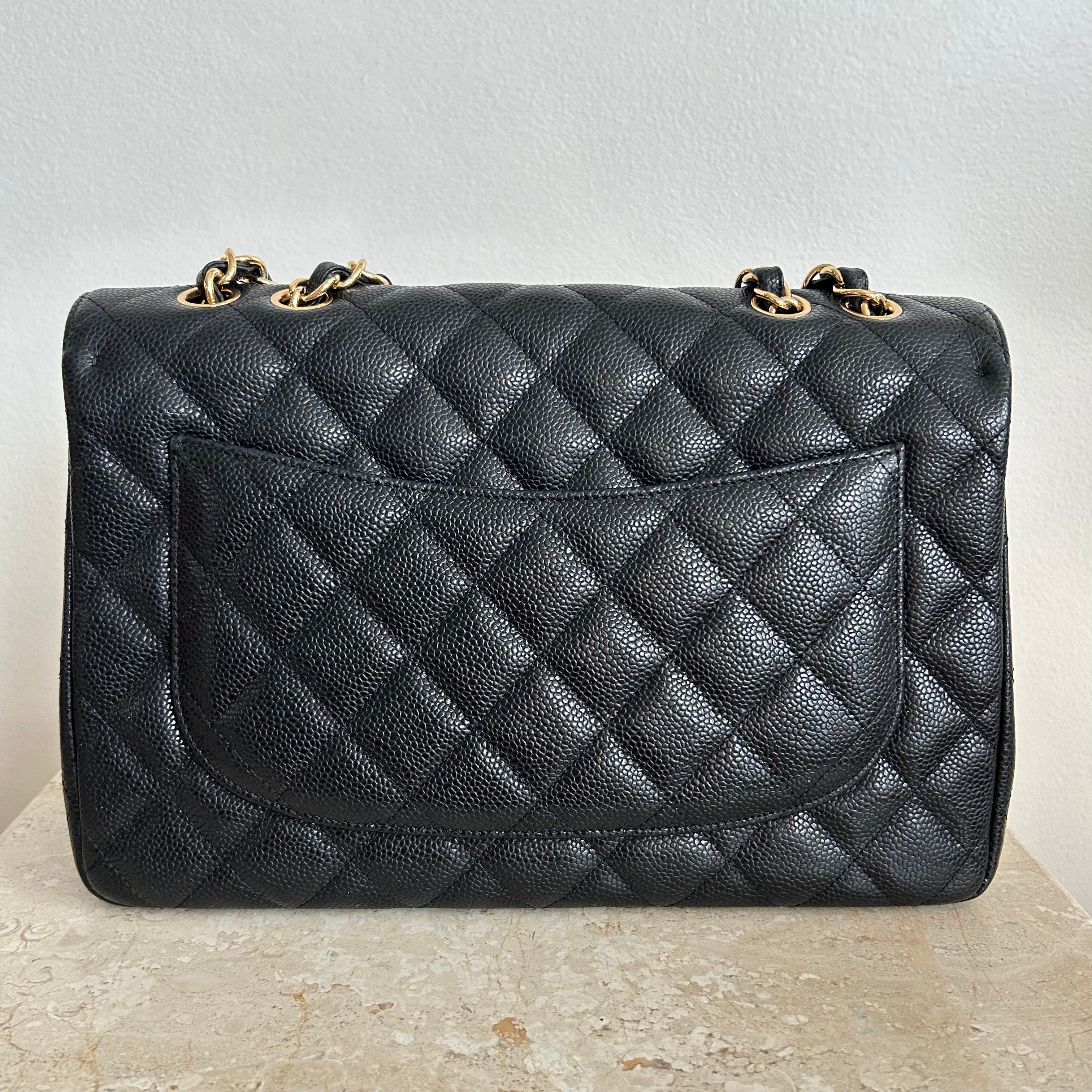 Pre-Owned CHANEL™ Black Caviar Jumbo Single Flap Bag GHW