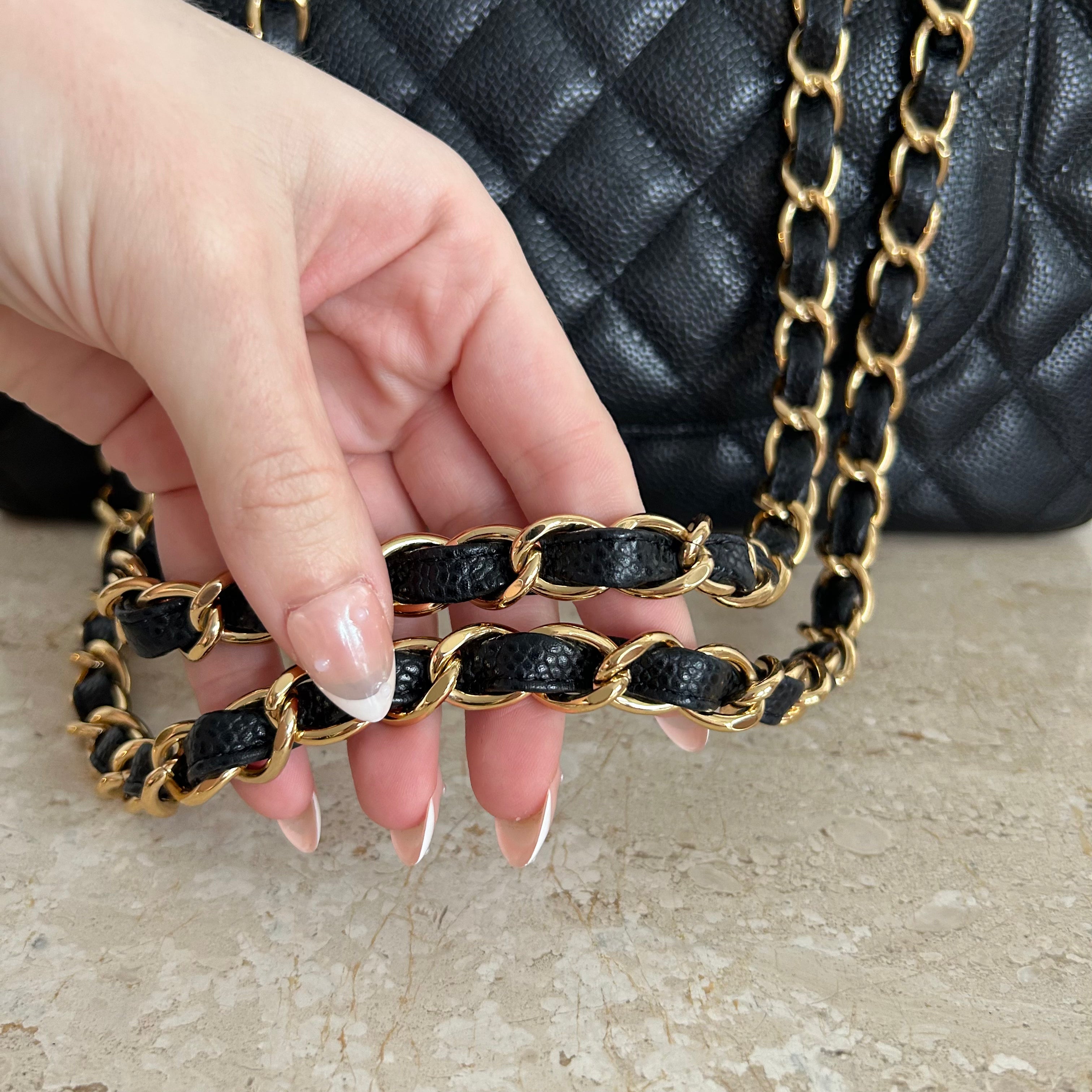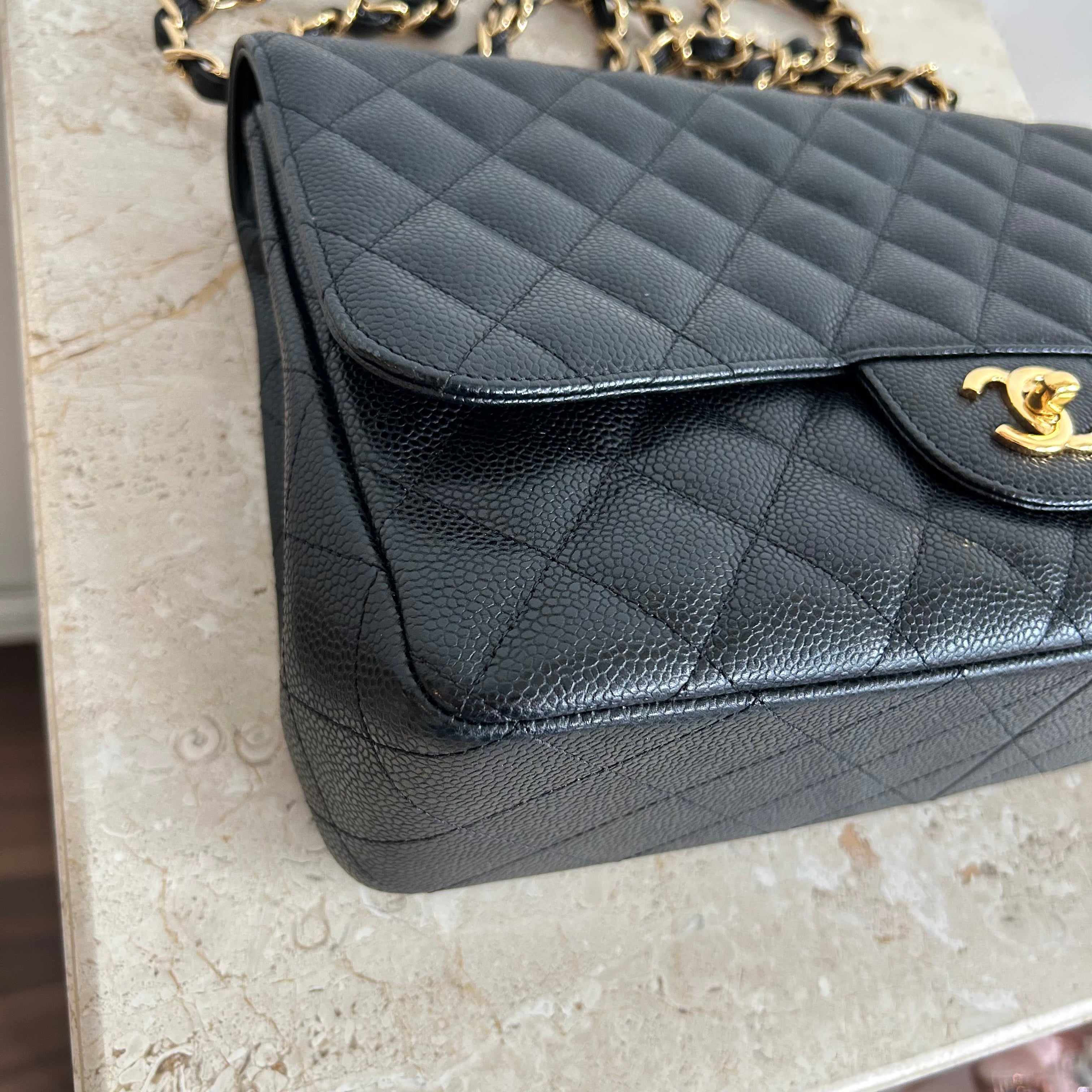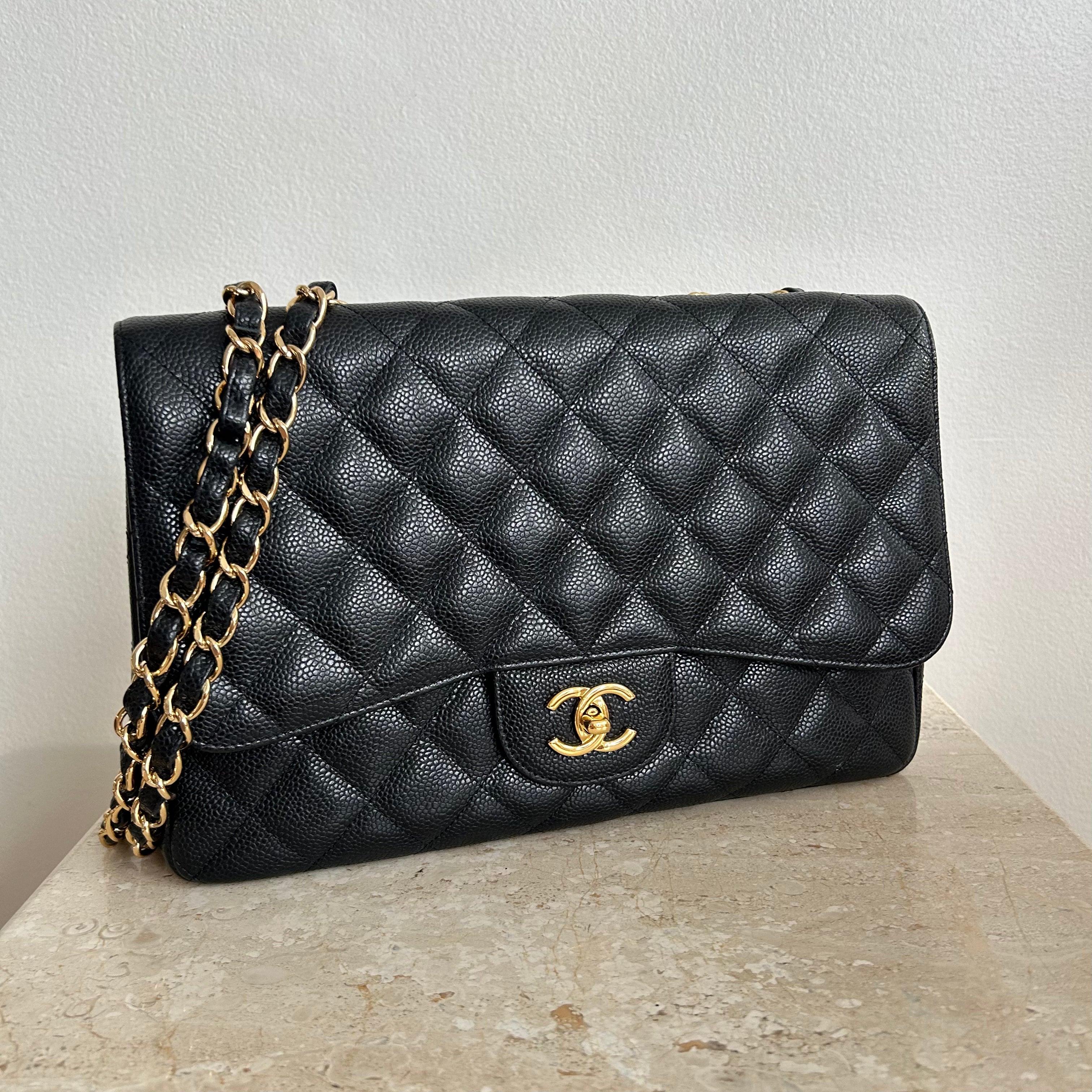Pre-Owned CHANEL™ Black Caviar Jumbo Single Flap Bag GHW