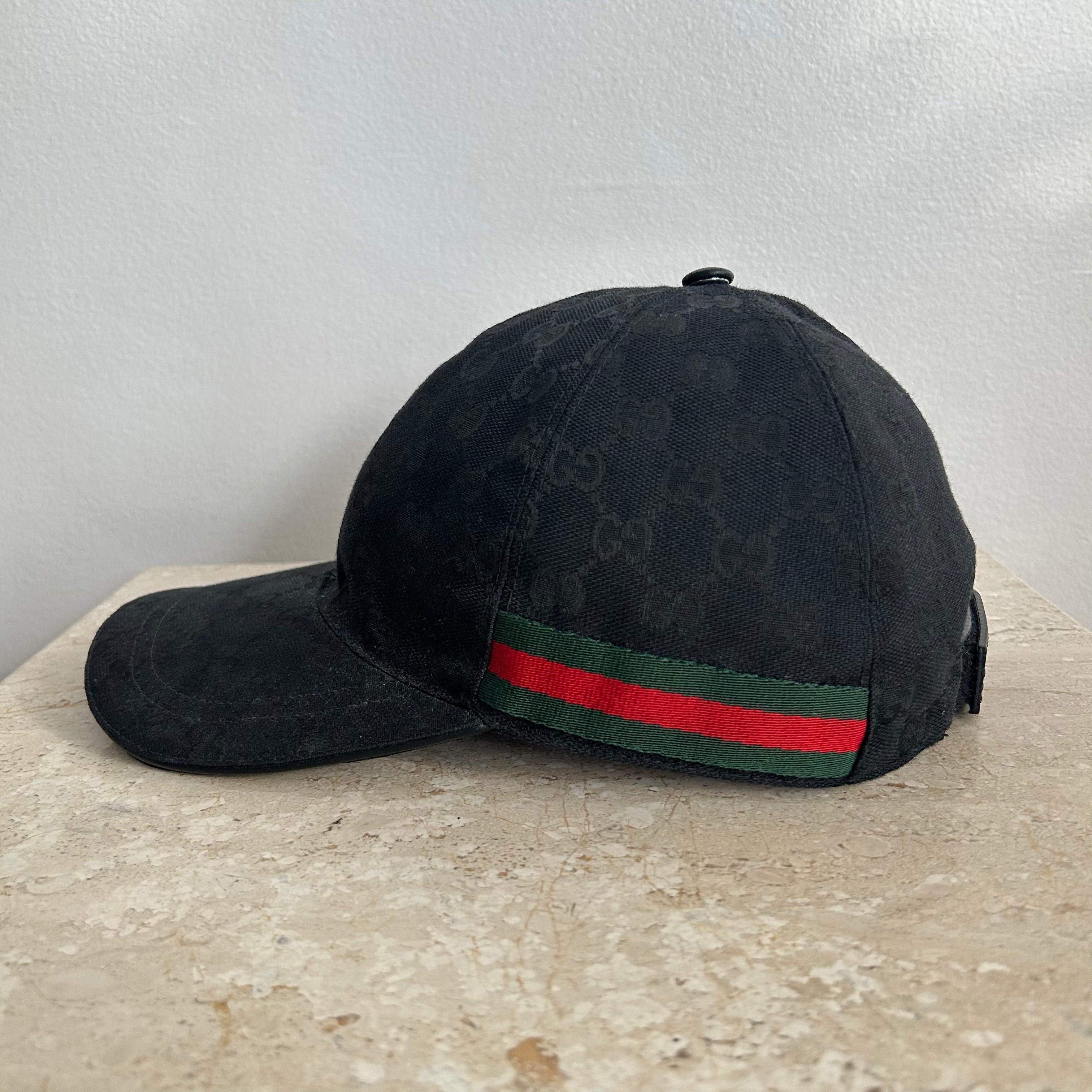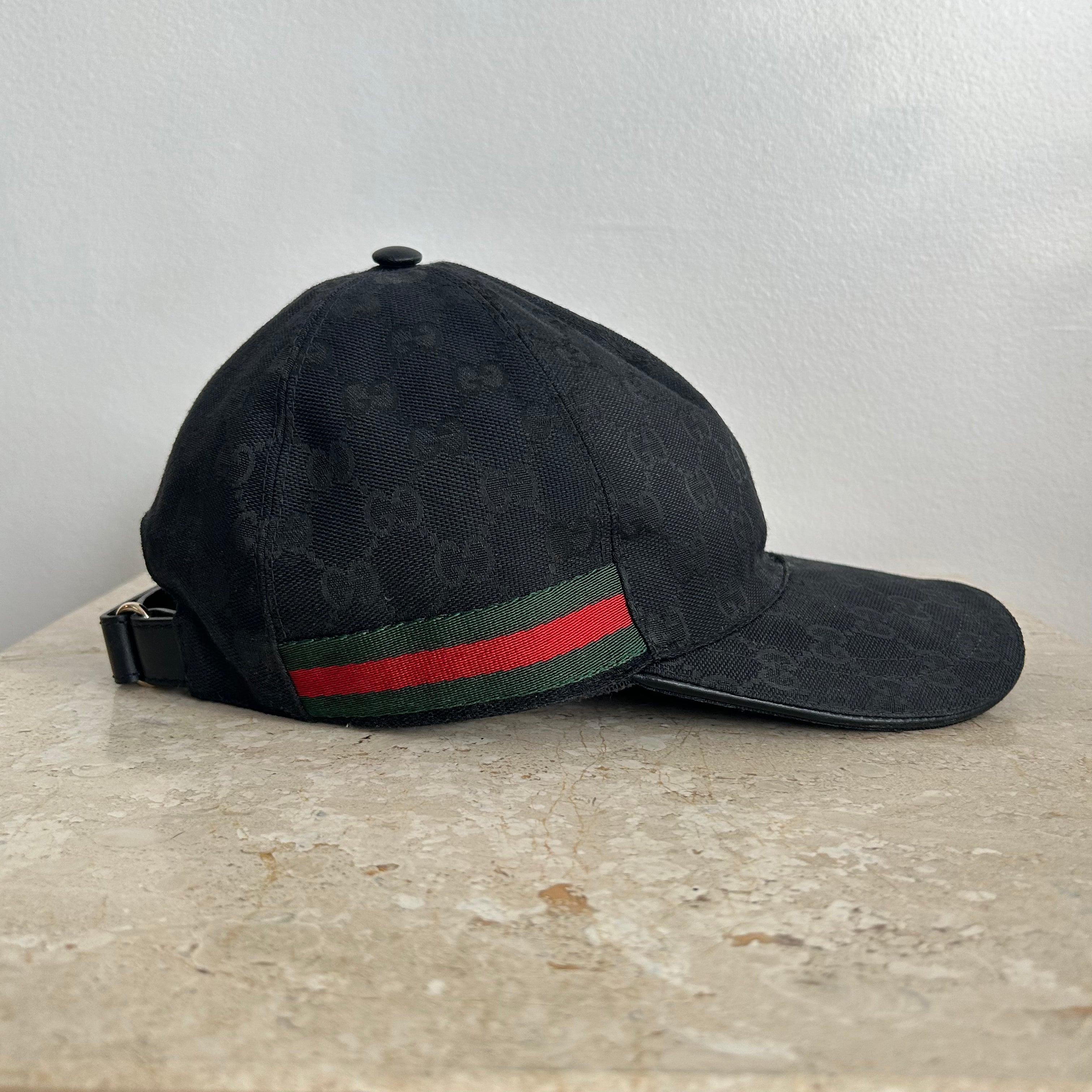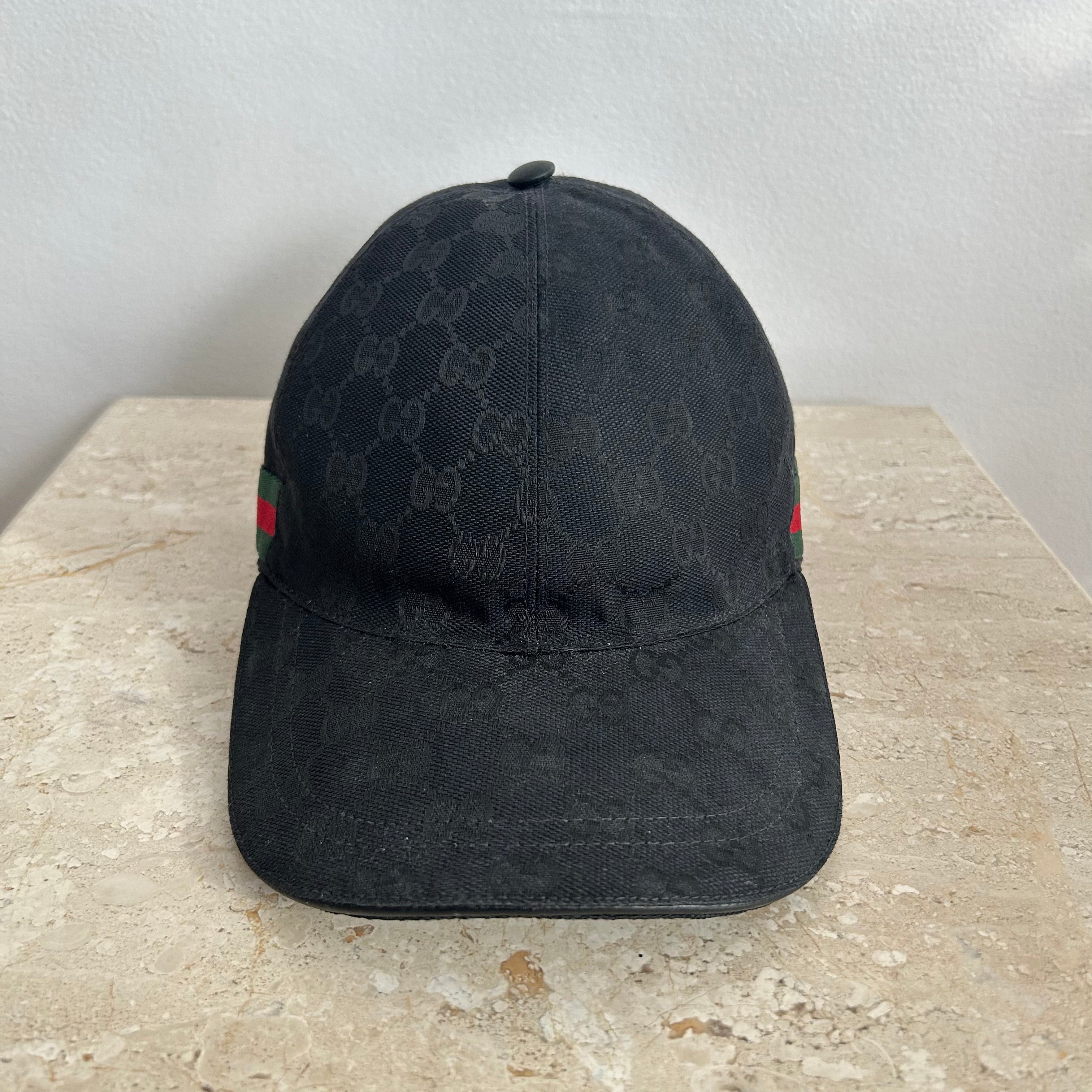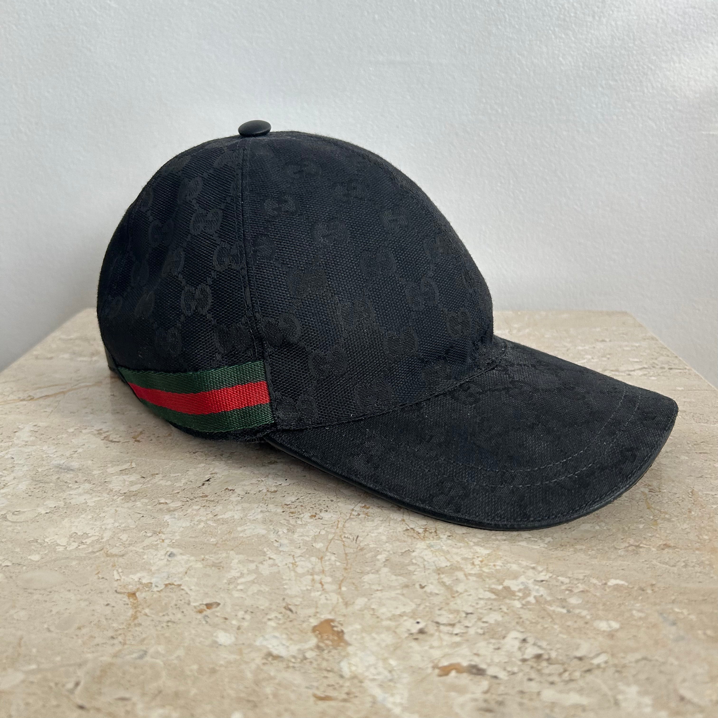 Pre-Owned GUCCI Black Monogram Baseball Cap Size M