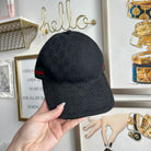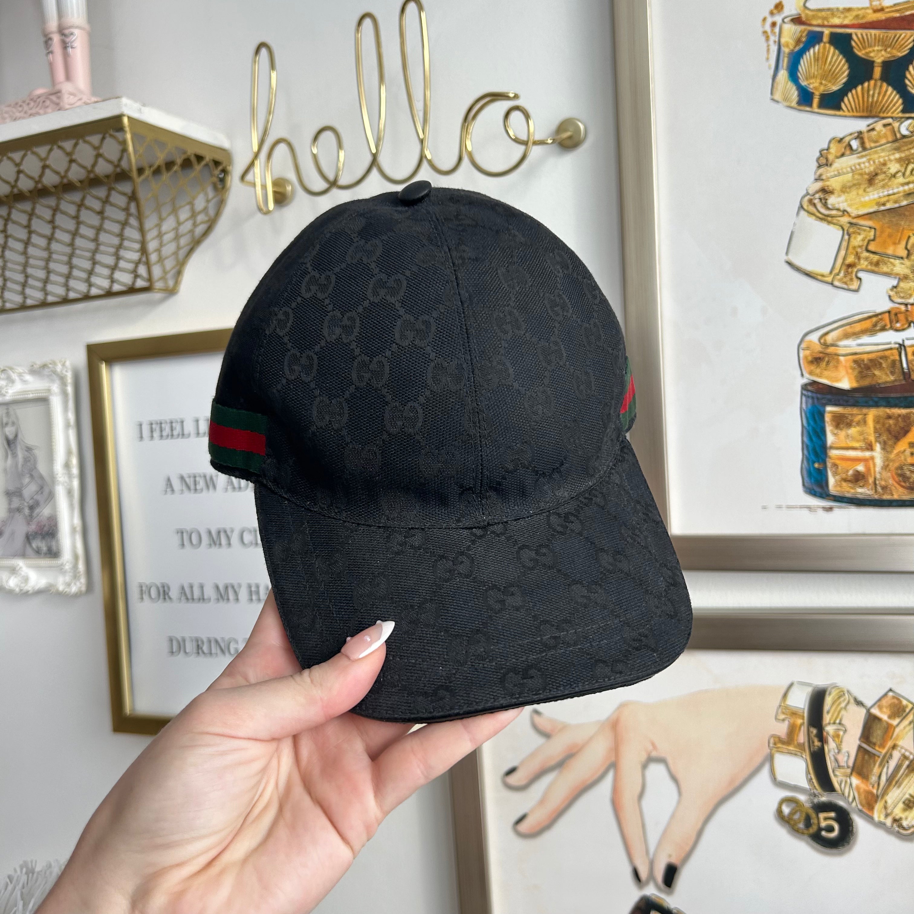 Pre-Owned Gucci Black Monogram Baseball Cap. Signature black monogram canvas with web detail and adjustable velcro closure. This is a great find!